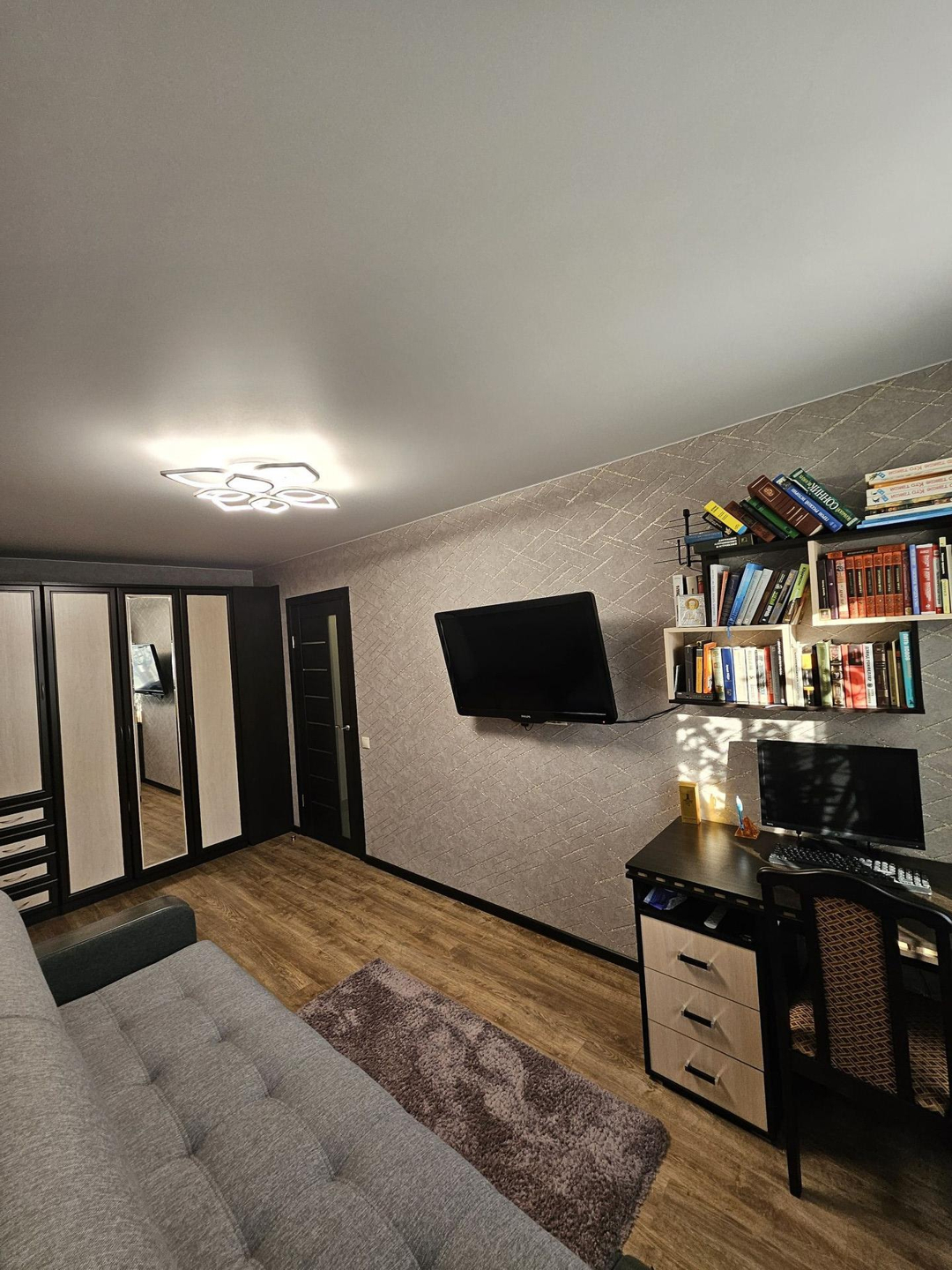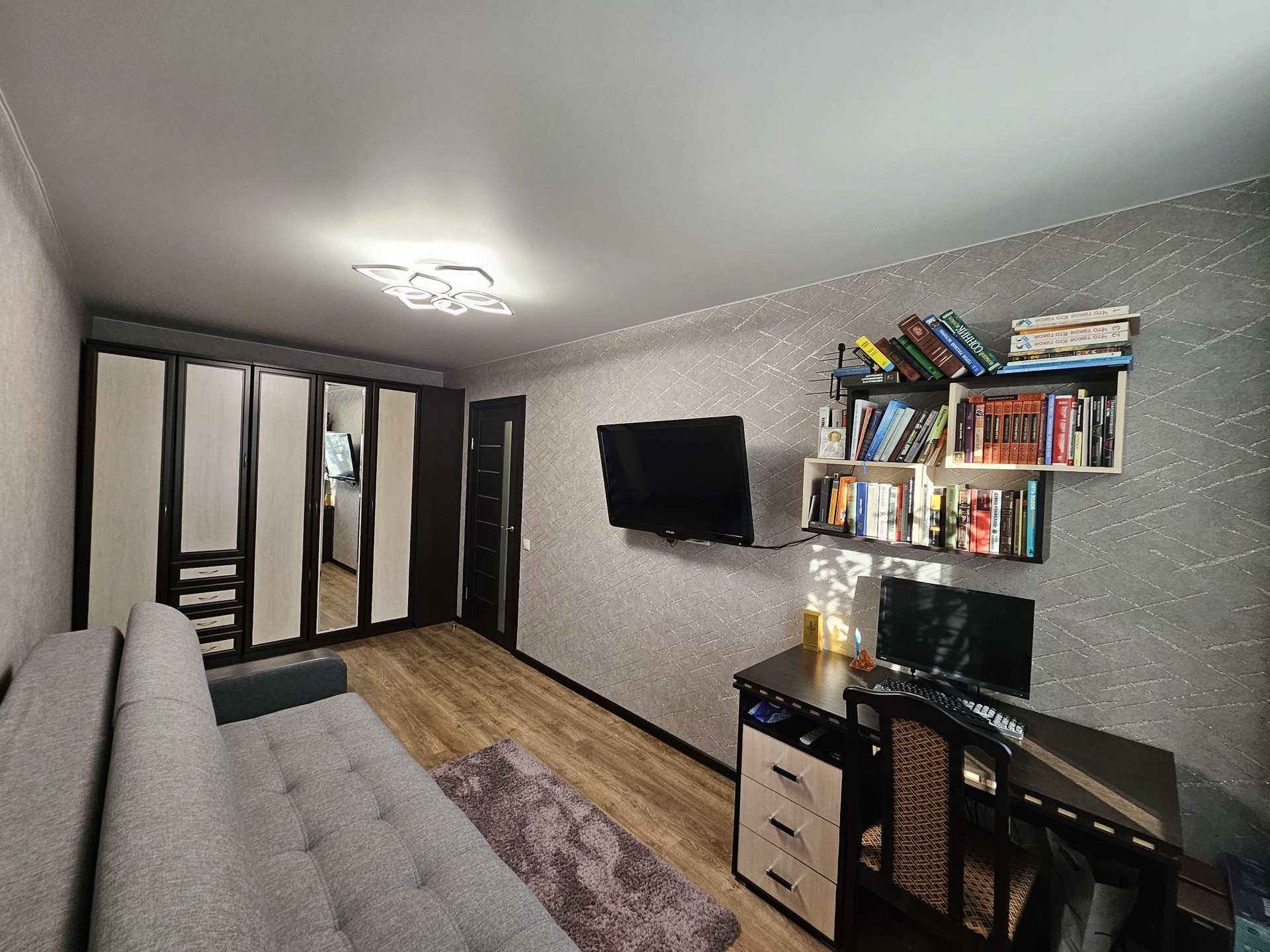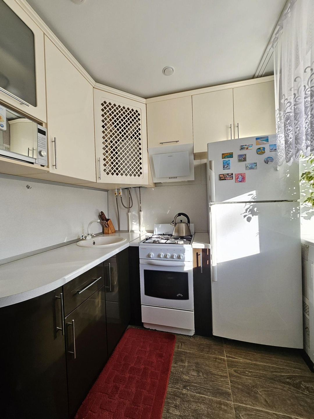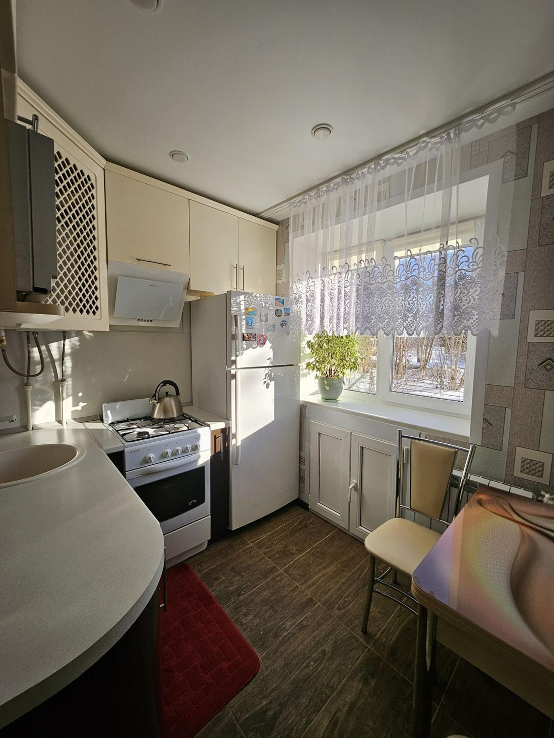 Продается 2х комнатная квартира после капитального ремонта с раздельными комнатами. Общая площадь 44,1 м2, комнаты 16,8м2 и 13,6м2, кухня 6м2. Квартира в отличном состоянии, ремонт делали для себя. Полы вскрывались, заливали бетоном, электрика и трубы полностью заменены. На полу в прихожей и на кухне керамогранит, проведен теплый пол; в комнатах на полу ламинтат. Окна ПВХ, заменены межкомнатные двери, потолки по всей квартире натяжные. Санузел в плитке, сантехника в отличном состоянии. Остается кухонный гарнитур, холодильник, кухонный стол и стулья. В комнатах остается встроенный шкаф, диван раскладной (новый), письменный стол, угловой шкаф, журнальный столик и тумбочка под телевизор. Остаются все люстры и карнизы со шторами. В прихожей встроенный шкаф, вешалка и зеркало. Квартира очень теплая и светлая. Входная дверь усиленная, с шумоизоляцией. В шаговой доступности остановки общественного транспорта, школа, детские сады и магазины.