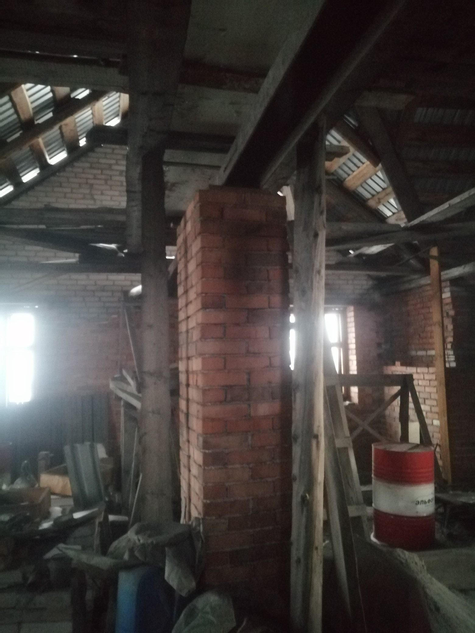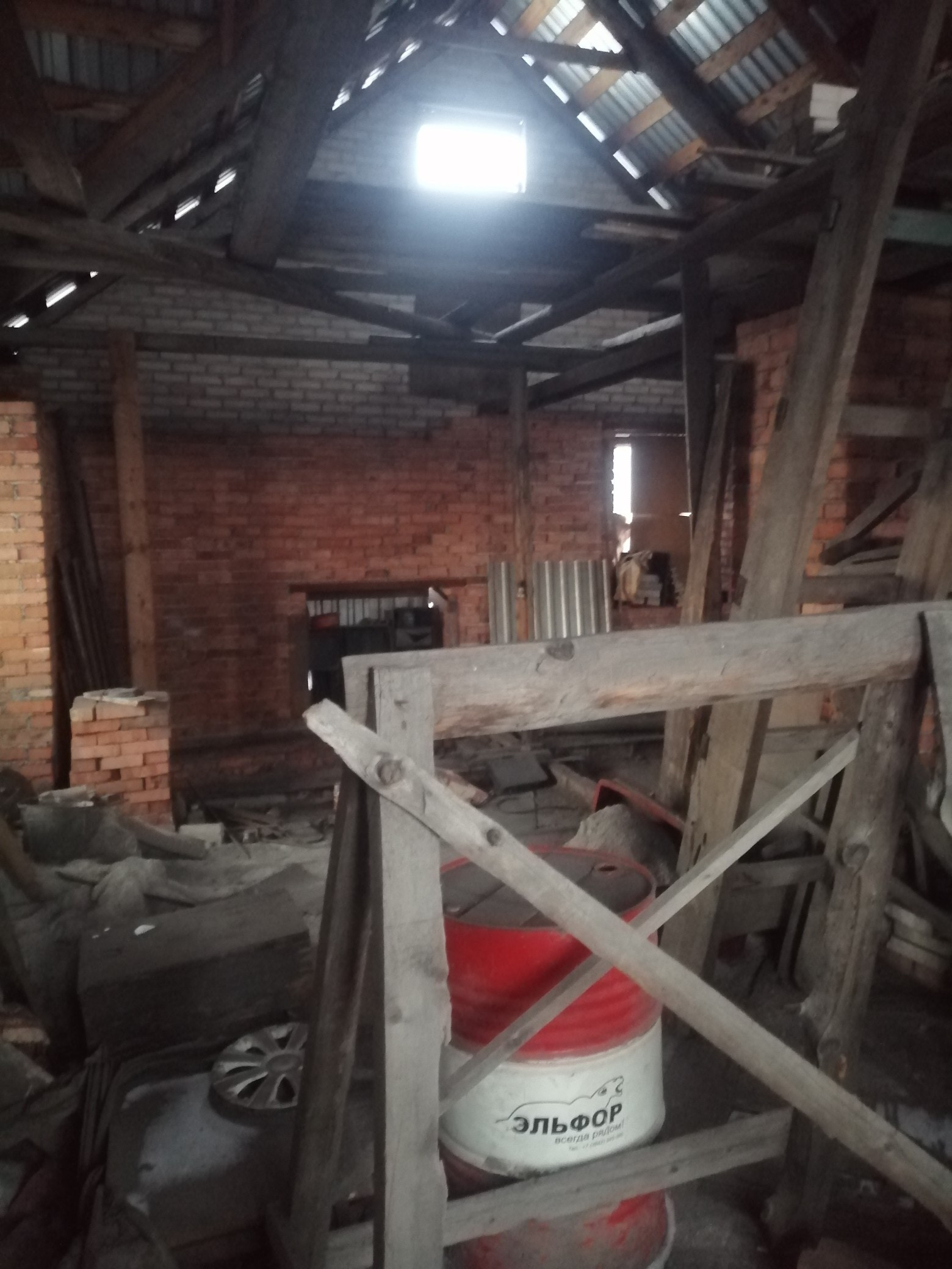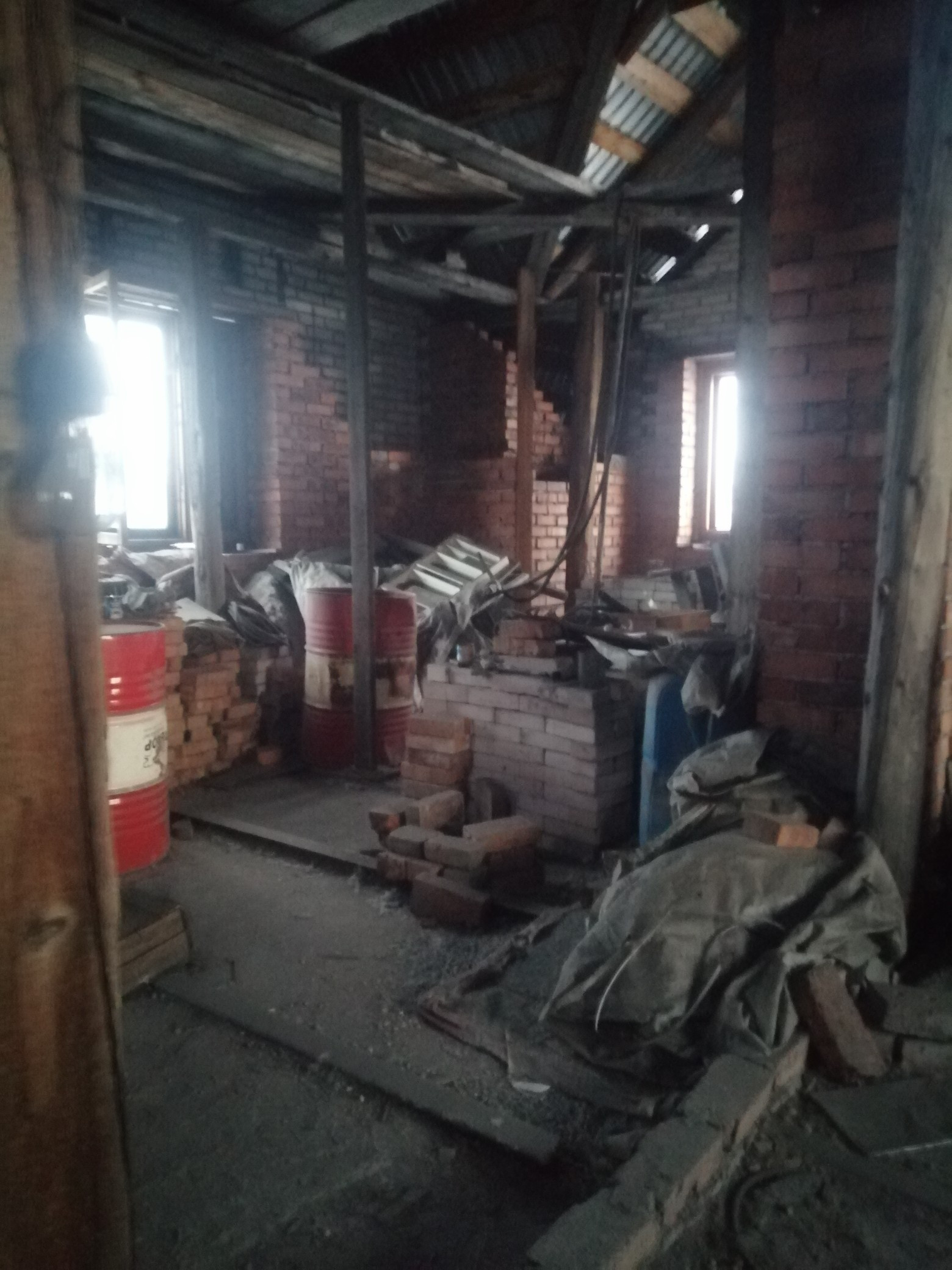 Недостроен внутри. Под крышой. Есть времянка и баня.