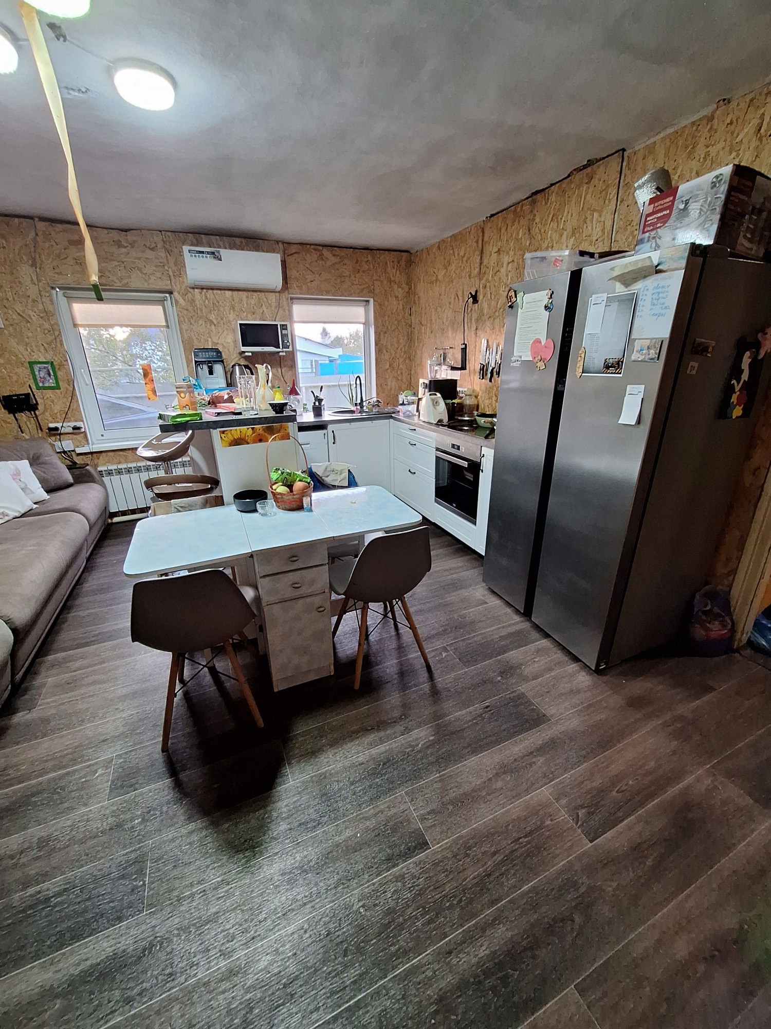 Продам дом площадью 55,9 м2 на участке 6 соток. Дом теплый и просторный. 3 комнаты(спальни), большая кухня-гостиная, коридор, ванная комната с душевой кабиной, отдельный туалет в доме. В котельной установлен твердотопливный котел длительного горения (неделька), также электрокотел (оформлен в Кузбассэнергосбыте). Батареи бимметалические. Вода в доме, канализация, горячая вода от бойлера на 100л. Телевидение и интернет Goodline по оптоволокну. 2 кондиционера. В доме остается кухня из Леруа Мерлен с барной стойкой и мойкой из искусственного камня. Без варочной поверхности и печки.