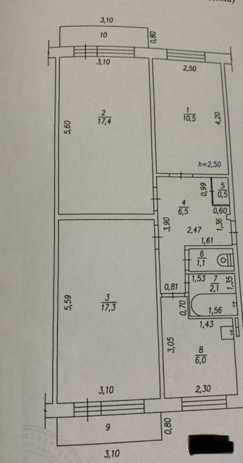 Общая площадь 62.8 м2