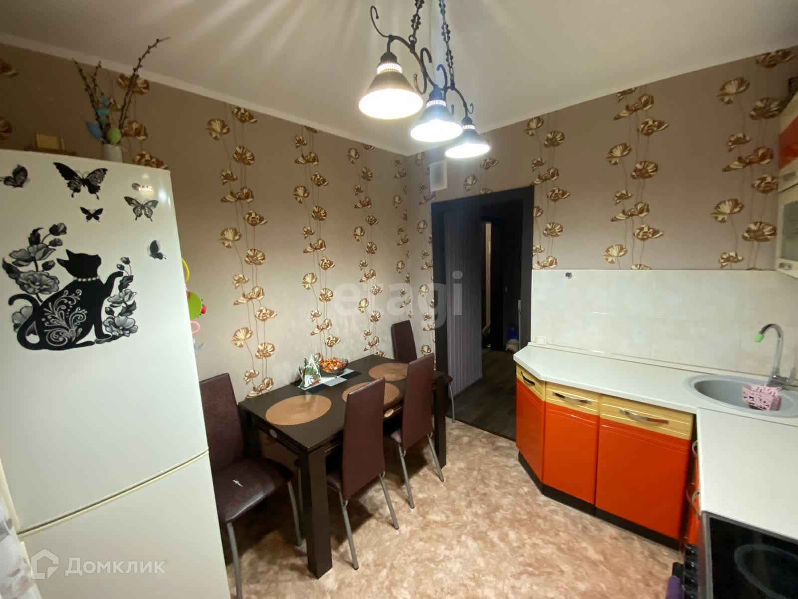 В квартире остается кухонный гарнитур и встроенная мойка.