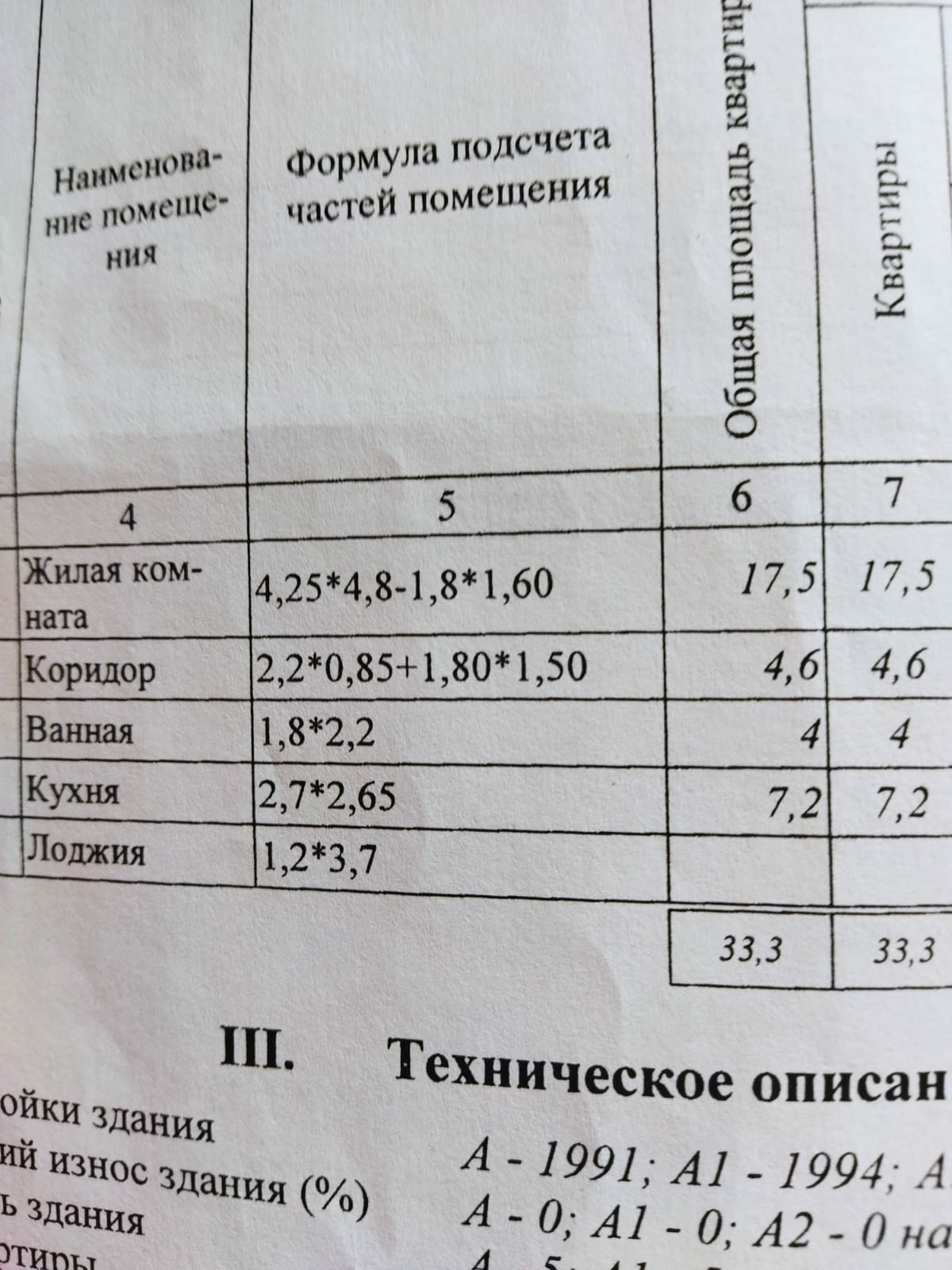 Общая площадь 33.3 м2