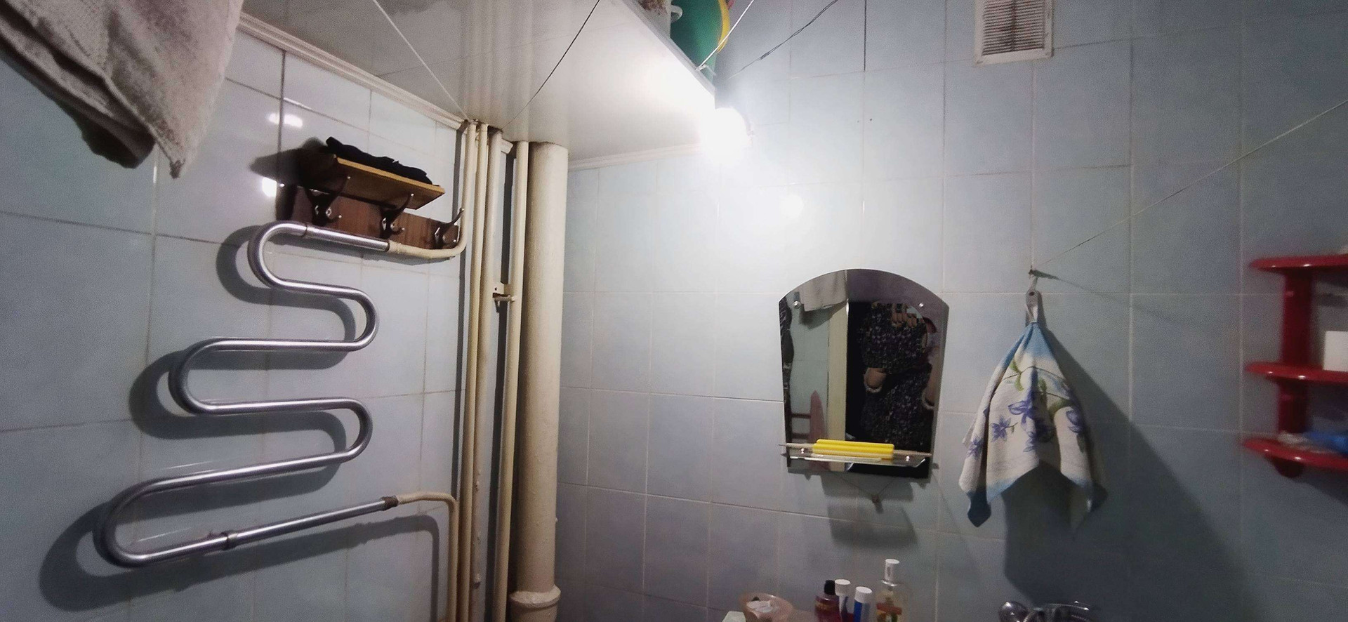 Санузел совмещённый,выложен кафель,