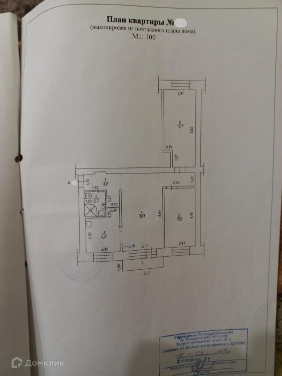 Жилая площадь 43.6 м2