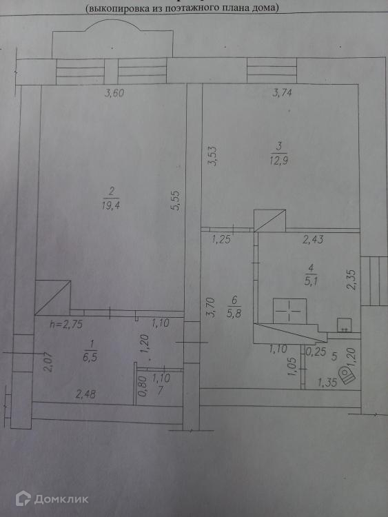 Общая площадь 52.2 м2