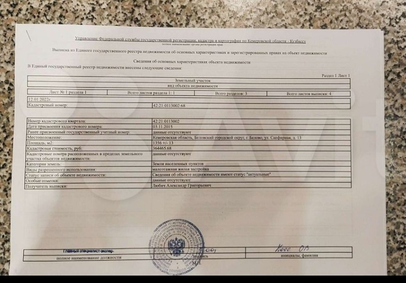 Срочно продам земельный участок в 4-м микрорайоне г. Белово. Разрешённое использование : малоэтажная жилая застройка. Категория земель:земли населённых пунктов. Возможна покупка в ипотеку.