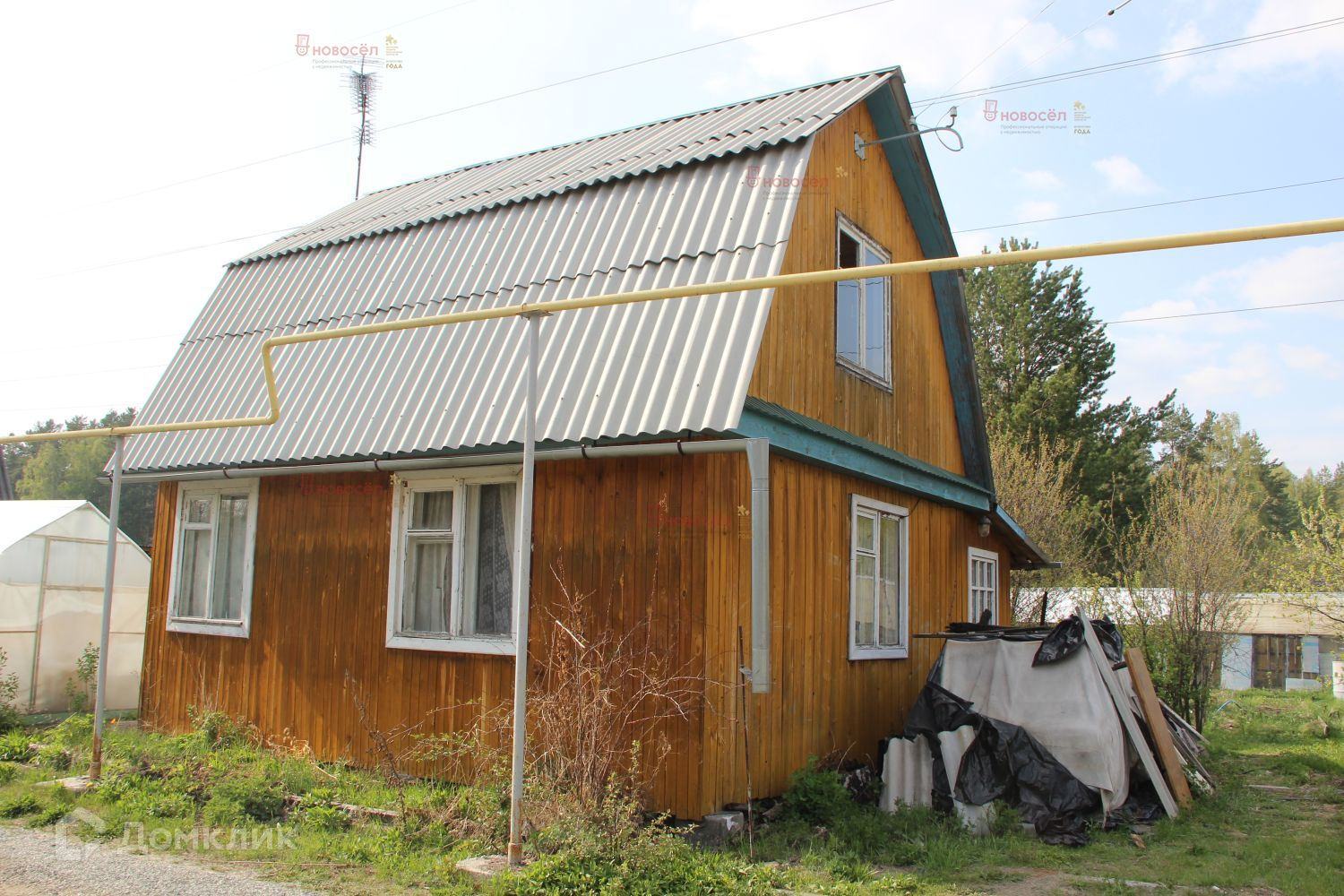 На участке дом из бруса с печным отоплением, три теплицы, многолетние плодовые и декоративные деревья.