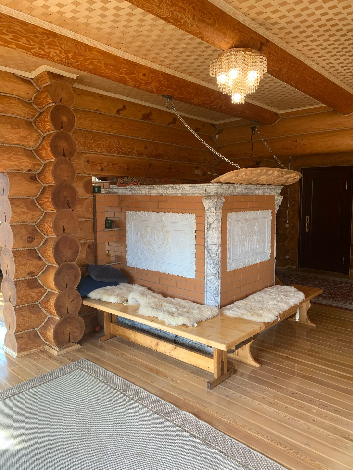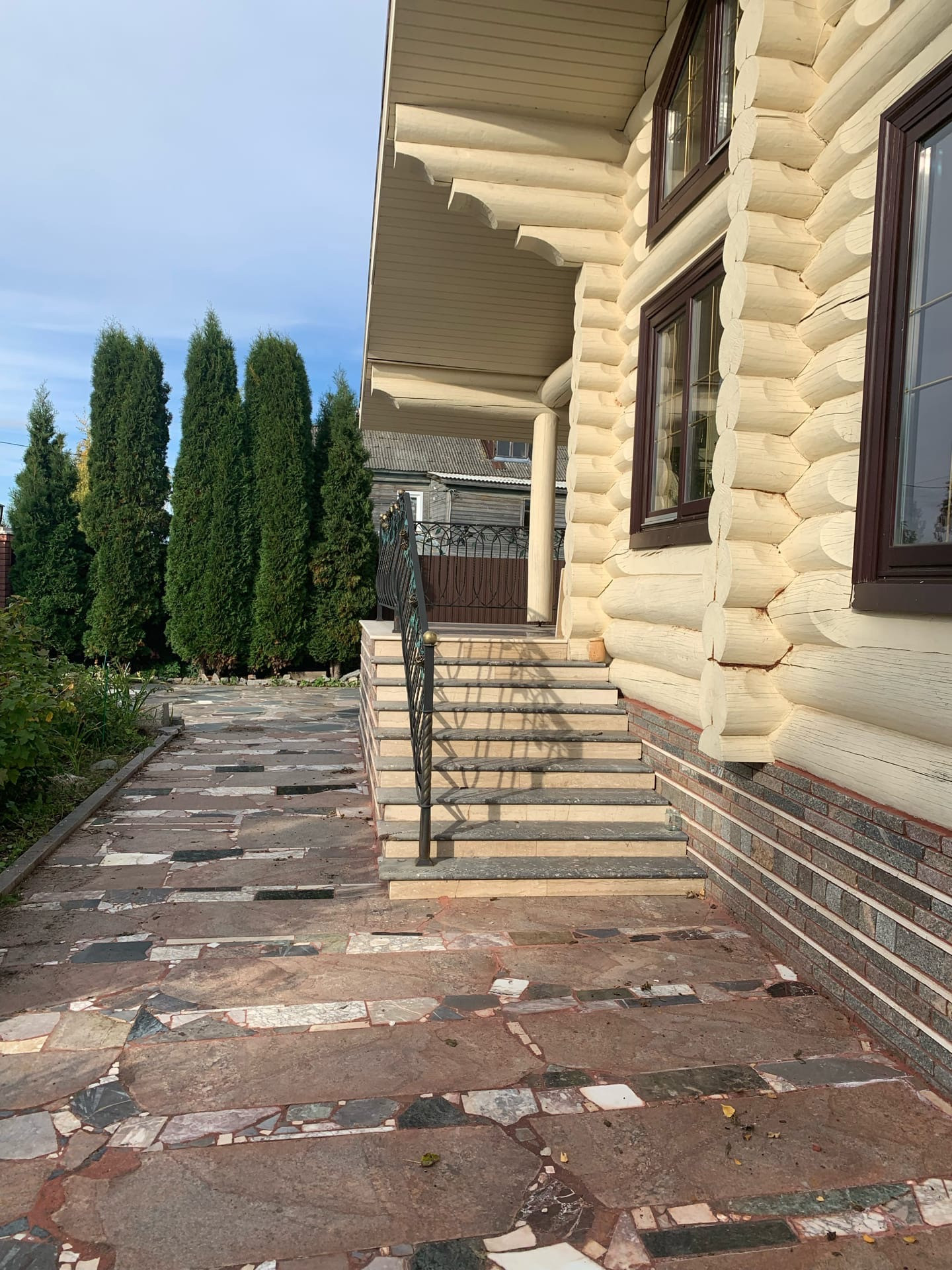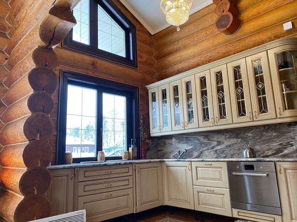 Дом находится на берегу Белого озера. В экологически чистом районе Вологодской области. Дом из лиственницы, 2 этажа, диаметр бревна 28-32, дом полностью устоялся. Имеется полуподвал. Отопление печное (перспектива газ). Печь русская инкрустирована мрамором и картинами из мрамора (лежанка из плит талька толщиной 150 мм). Полы хорошо утеплены, из лиственницы с прокладкой мягкой древесиной, между досок. Окна из лиственницы, стеклопакеты. Потолок дизайнерское решение из плетеного шпона карельский берёзы. Второй этаж - потолок из тканого натяжного полотна, не боится мороза. Есть балкон-полы мрамор. Крыльцо - полы мрамор. Лестница выполнена на 5-ти осном станке, инкрустация бронзы 3 мм. Двери лиственница, ручки коллекция "Леонардо". Столешница на кухне мрамор. Водоснабжение центральное. Канализация септик. Есть колодец. Дорожки и площадки на территории бетонные, облицованы натуральным камнем. Баня - печка из талька. Стеклянная беседка. Имеются хоз постройки: курятник - вода проведена, дом для животных, дровяник. Много плодовых деревьев и кустов: туи, яблони, кусты голубики, розы.