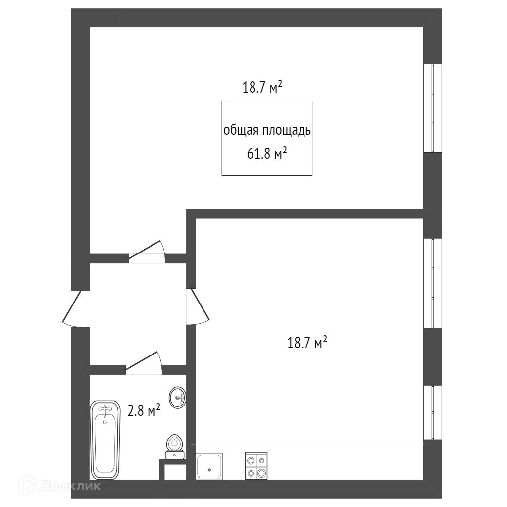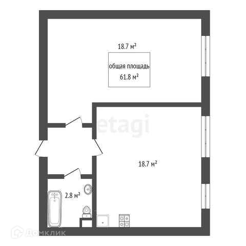 Общая площадь 61.8 м2