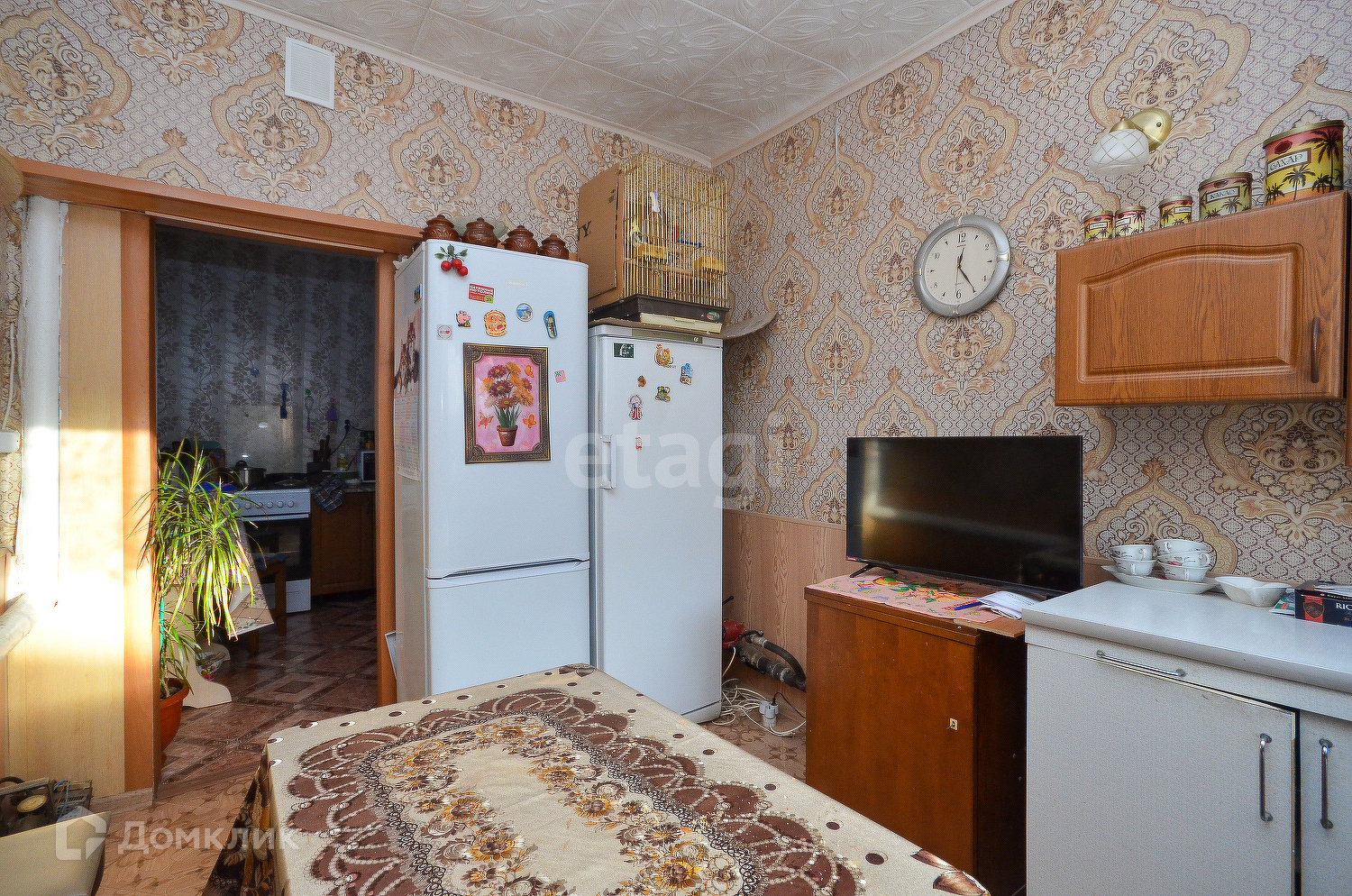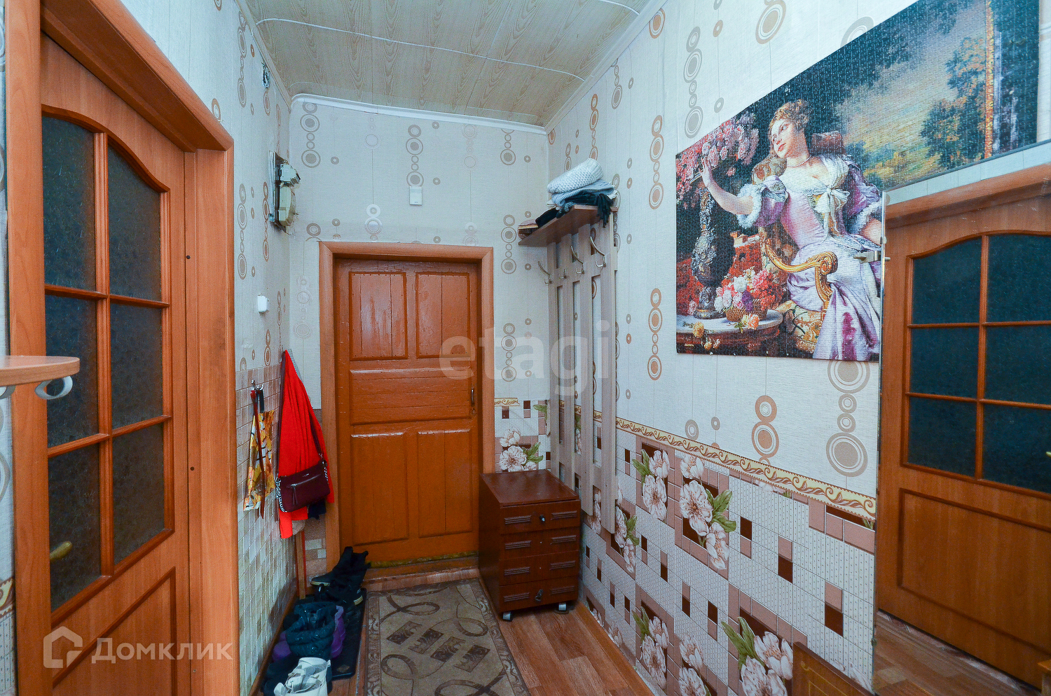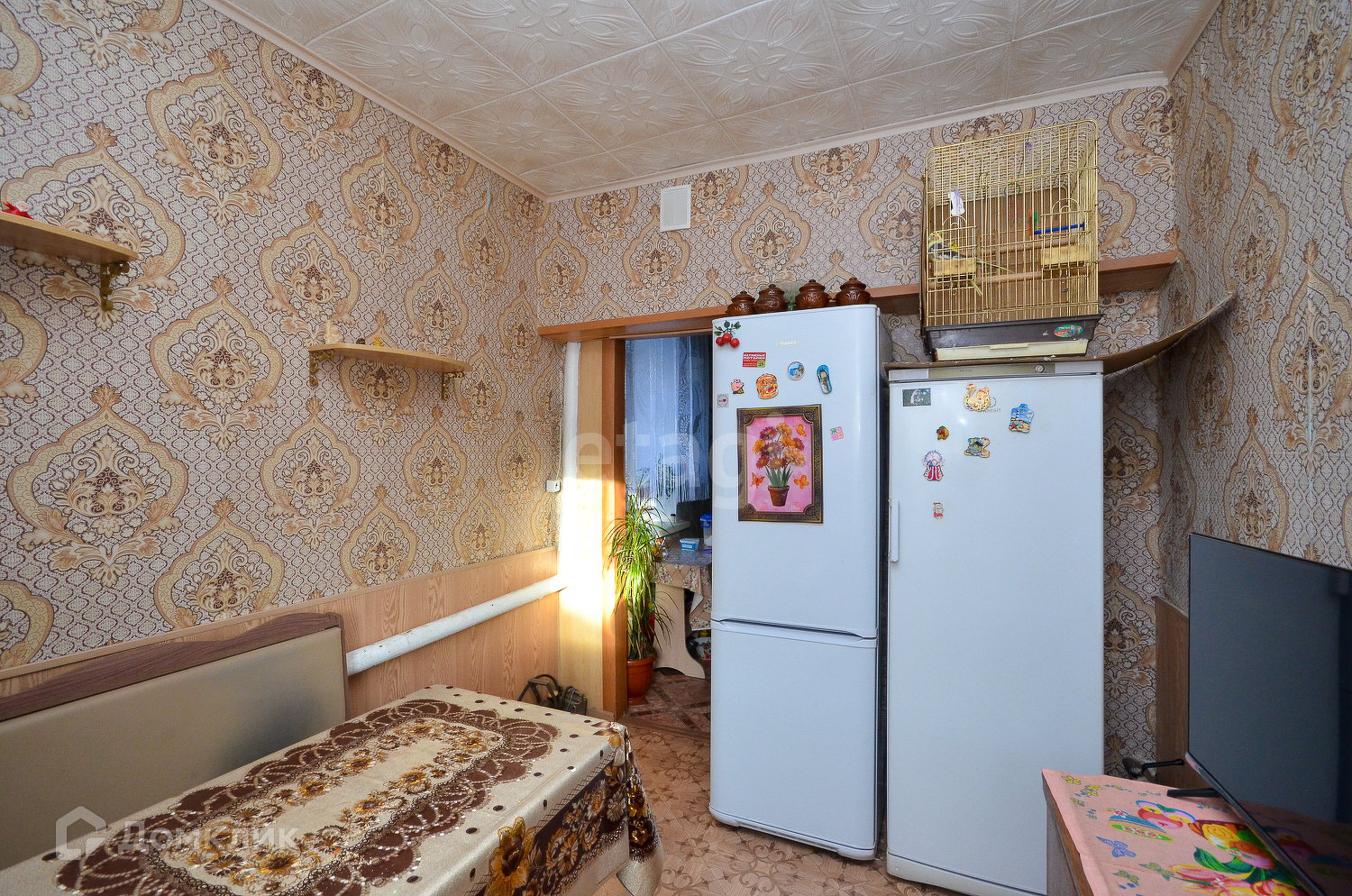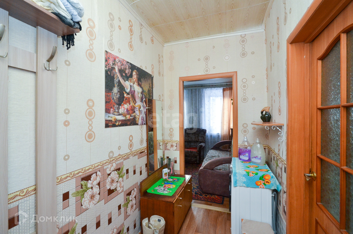 Высокие потолки 2.75, в зале натяжной потолок, в остальных помещениях-ПВХ панели.
