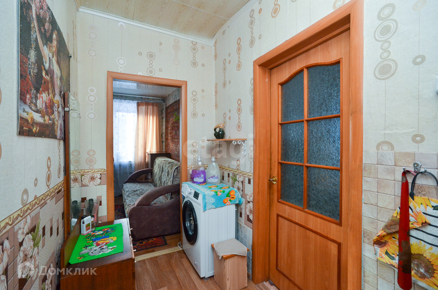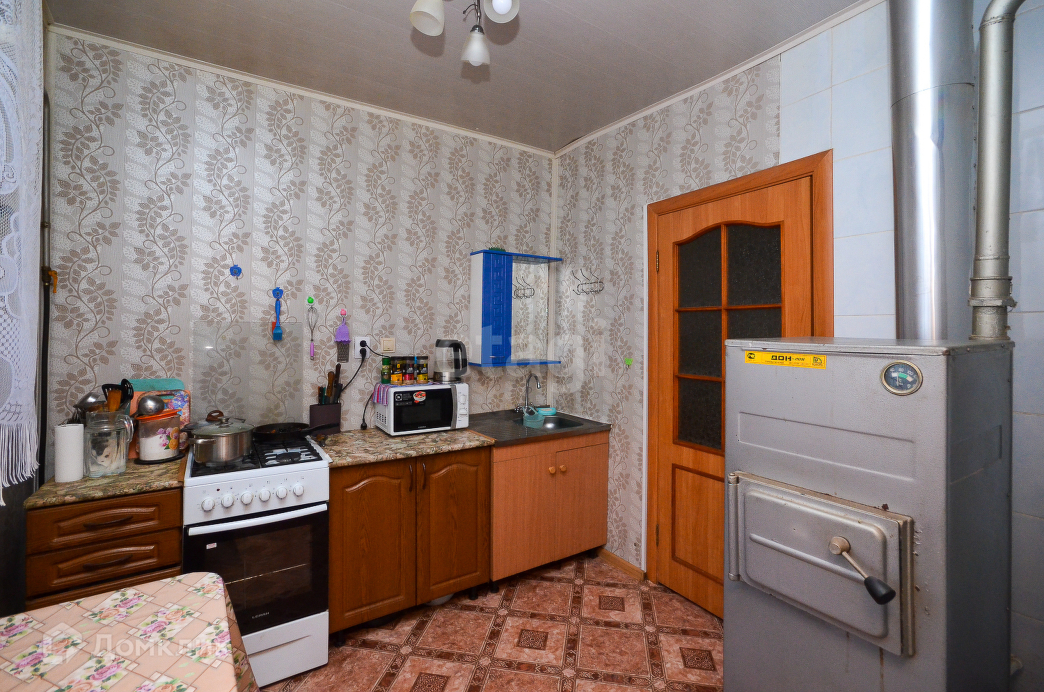 Дом шлаколитой, облицован кирпичом, имеет площадь 38,8 кв. метров и включает в себя: прихожую, кухню, две спальни, гостиную.