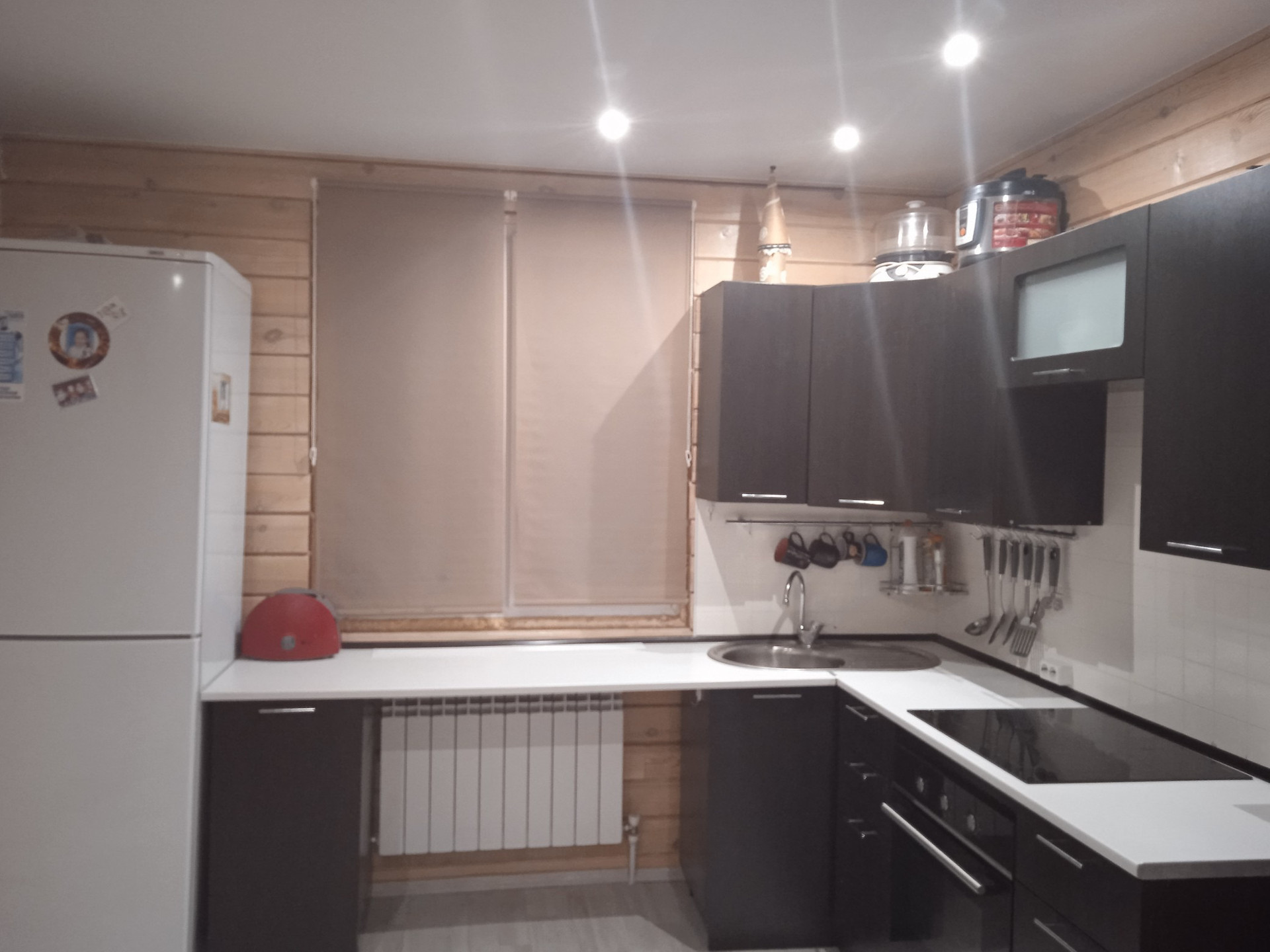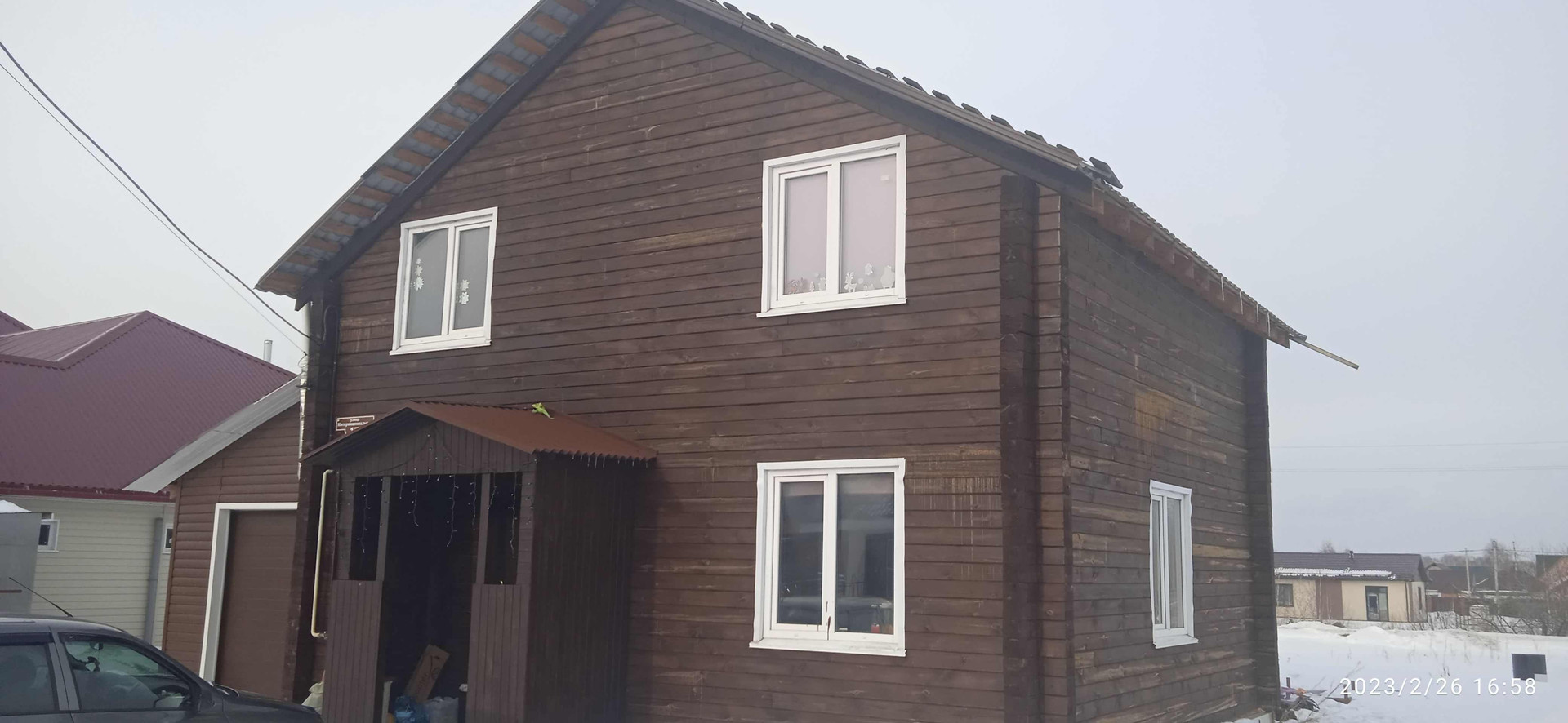 В продаже дом, район Юго-Западный из профилированного бруса. Потолки натяжные, ламинат, ковролин. На 1-м этаже кухня-гостиная, с/у раздельный, гардеробная, бойлерная. На 2-м этаже три спальни, с/у, гардеробная. Из дома выход на веранду и баню. Гараж с авто-воротами. Электричество 380вт, септик на 12 куб, газ.