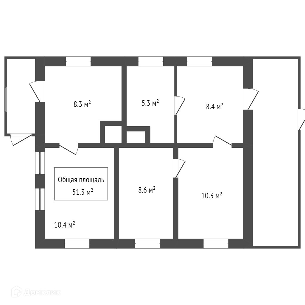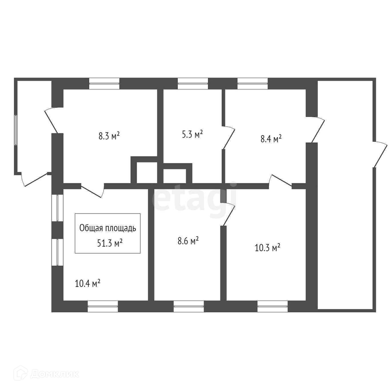 Общая площадь 51.3 м2