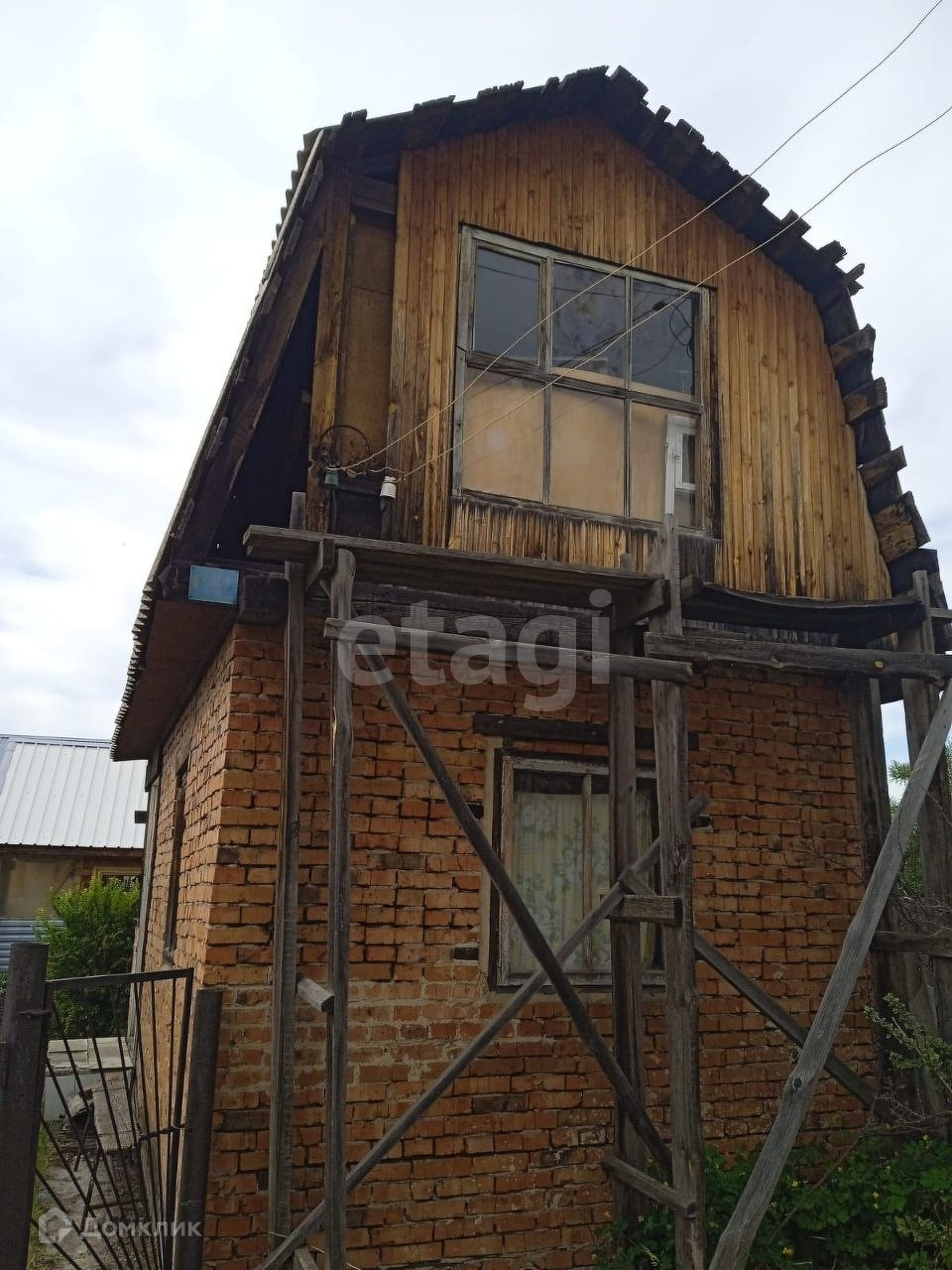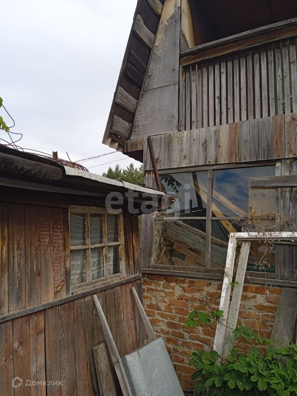Дом кирпичный с мансардным этажом, требует ремонта, но добротный - можно жить летом. Земля плодородная, есть плодовые деревья. Рядом сосновый лес.