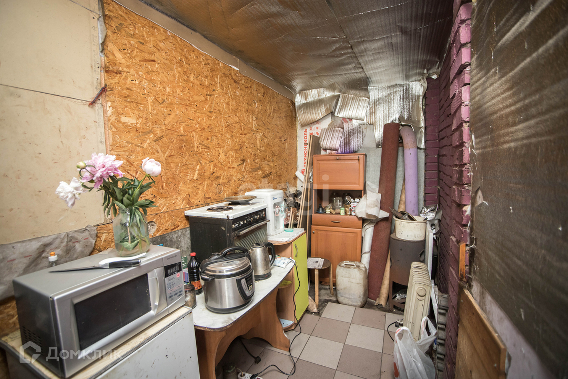 комната+кухня, есть буржуйка.