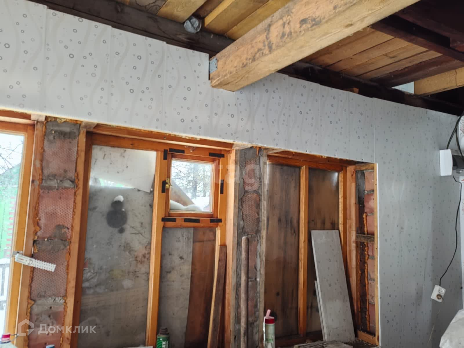 В доме стены облицованы стеновыми панелями, обновлен потолок, но ремонт не закончен.