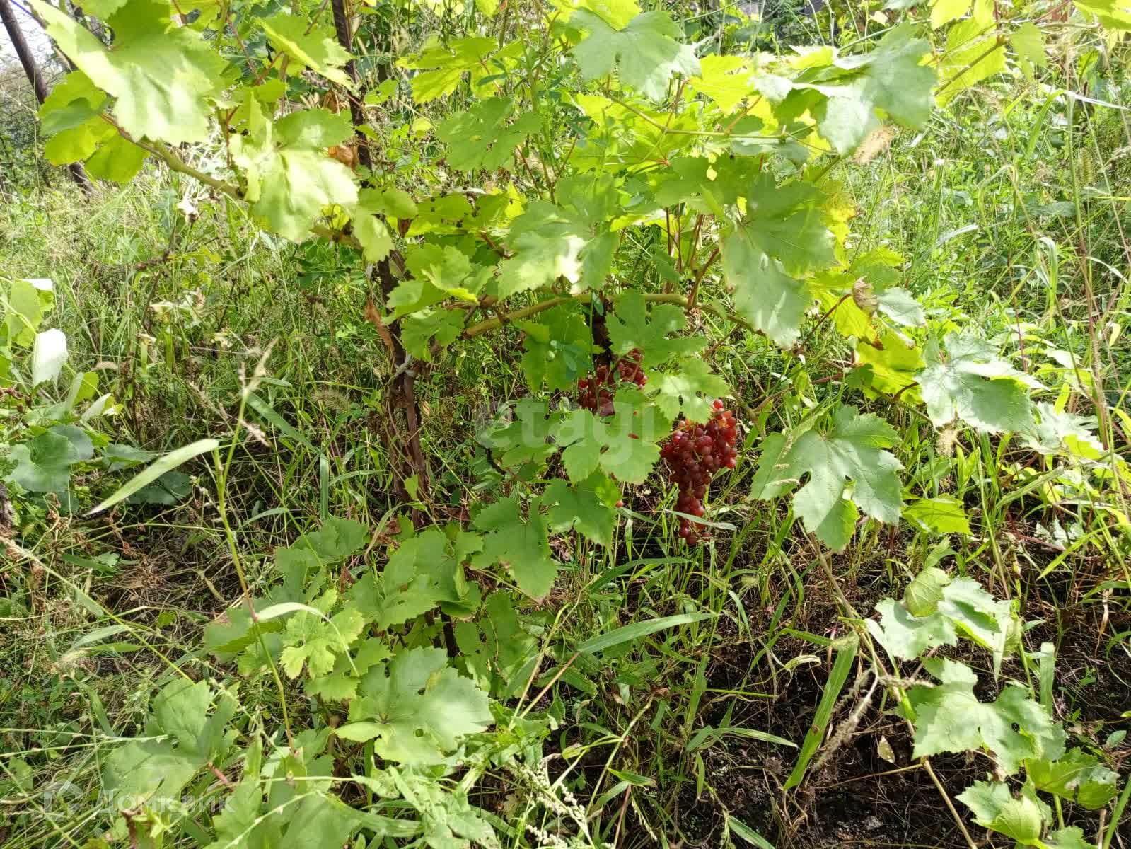 На участке растет : Вишня , виноград двух сортов , облепиха , смородина черная и красная , крыжовник , малина , клубника .