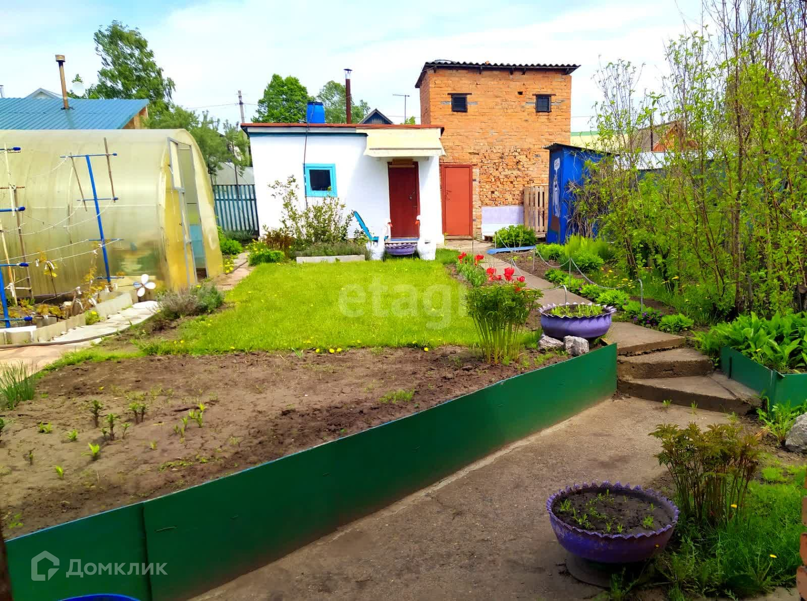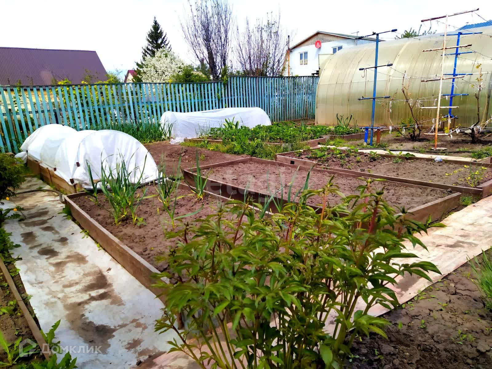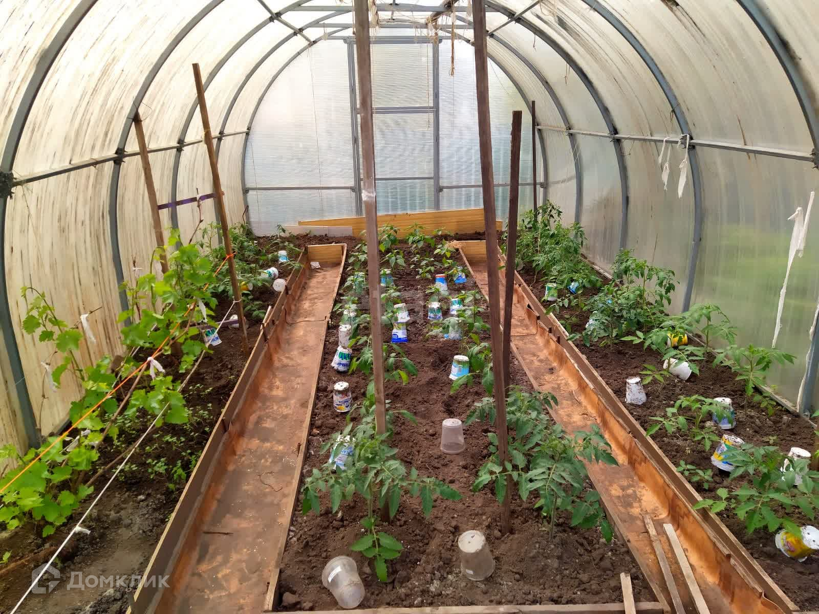 Участок разработан, уже произведены все посадки овощных культур. Множество плодово-ягодных кустарников и 8 видов отменного винограда.