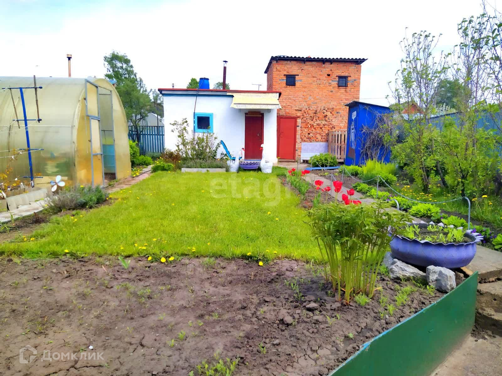 На участке двухэтажный кирпичный дом, в котором 2 комнаты и кухня. Есть печь с камином. Стены дома не нуждаются в дополнительном утеплении.
