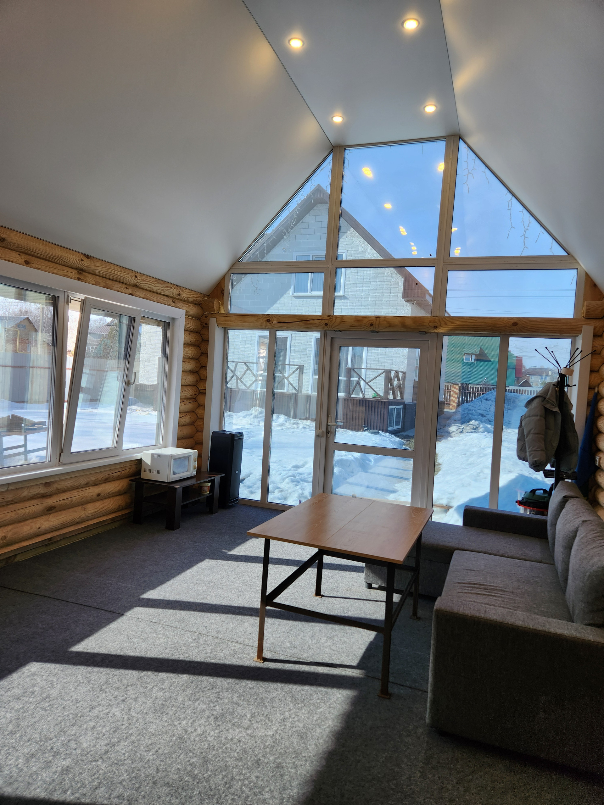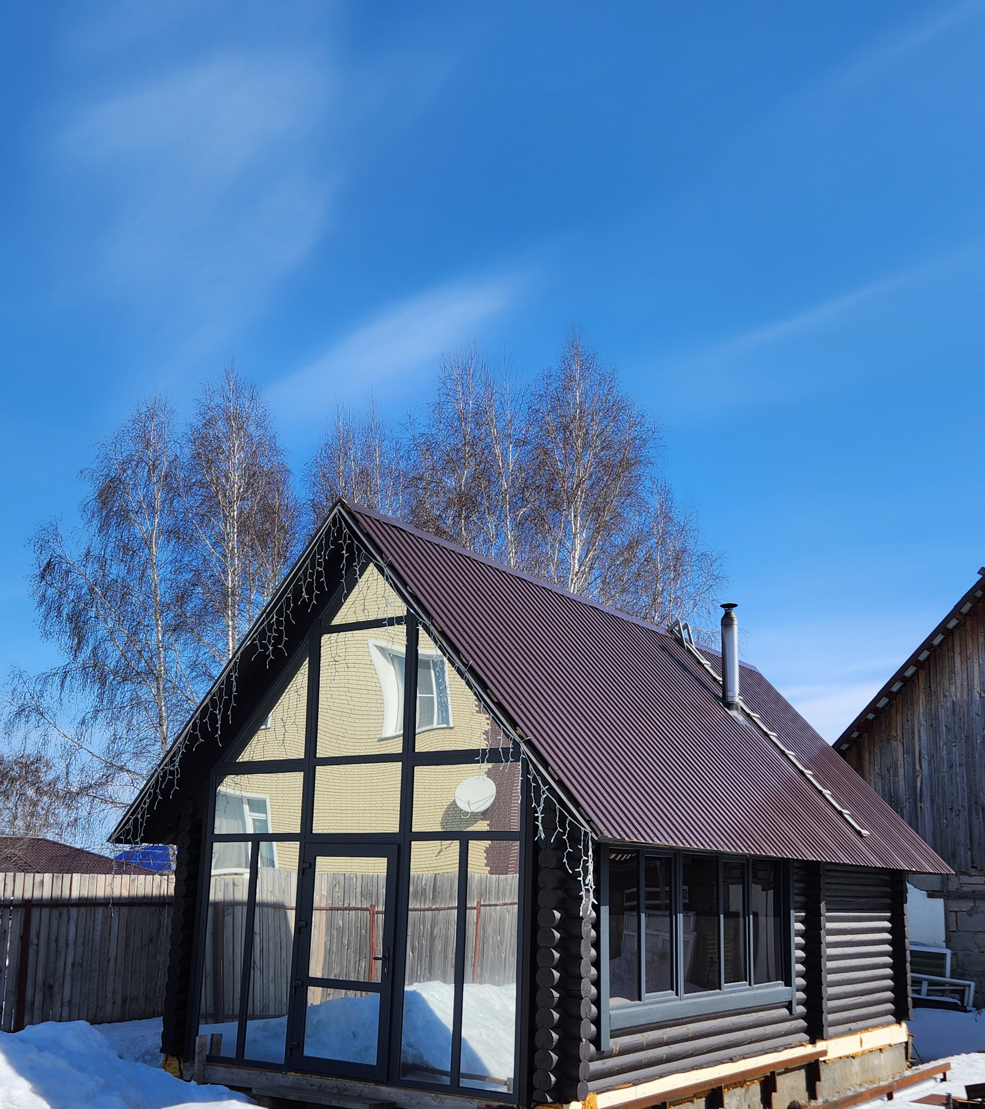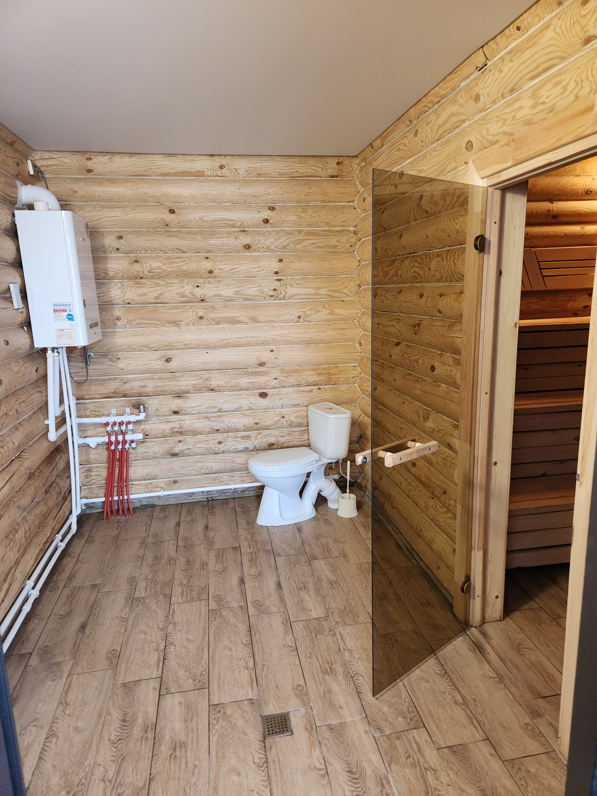 На территории отдельностоящая баня 4,5×9 из круглого бруса с большой зоной отдыха. В бане так же газовое отопление и тёплый пол.