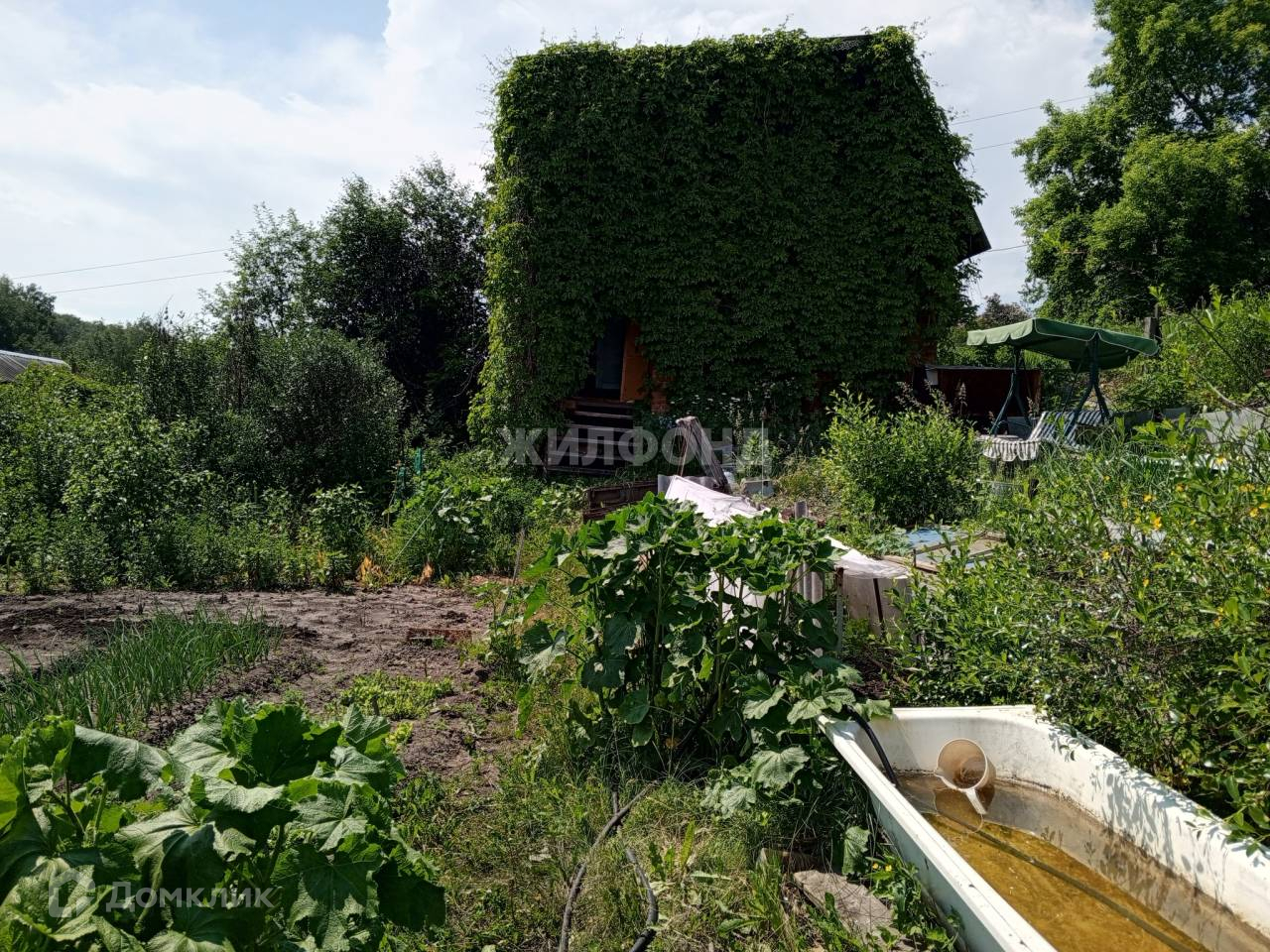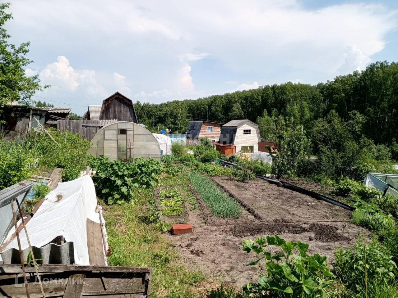 На участке теплица из поликарбоната. Все посадки: яблоня, полукультурка, малина, черная и красная смородина, крыжовник, терн, клубника.