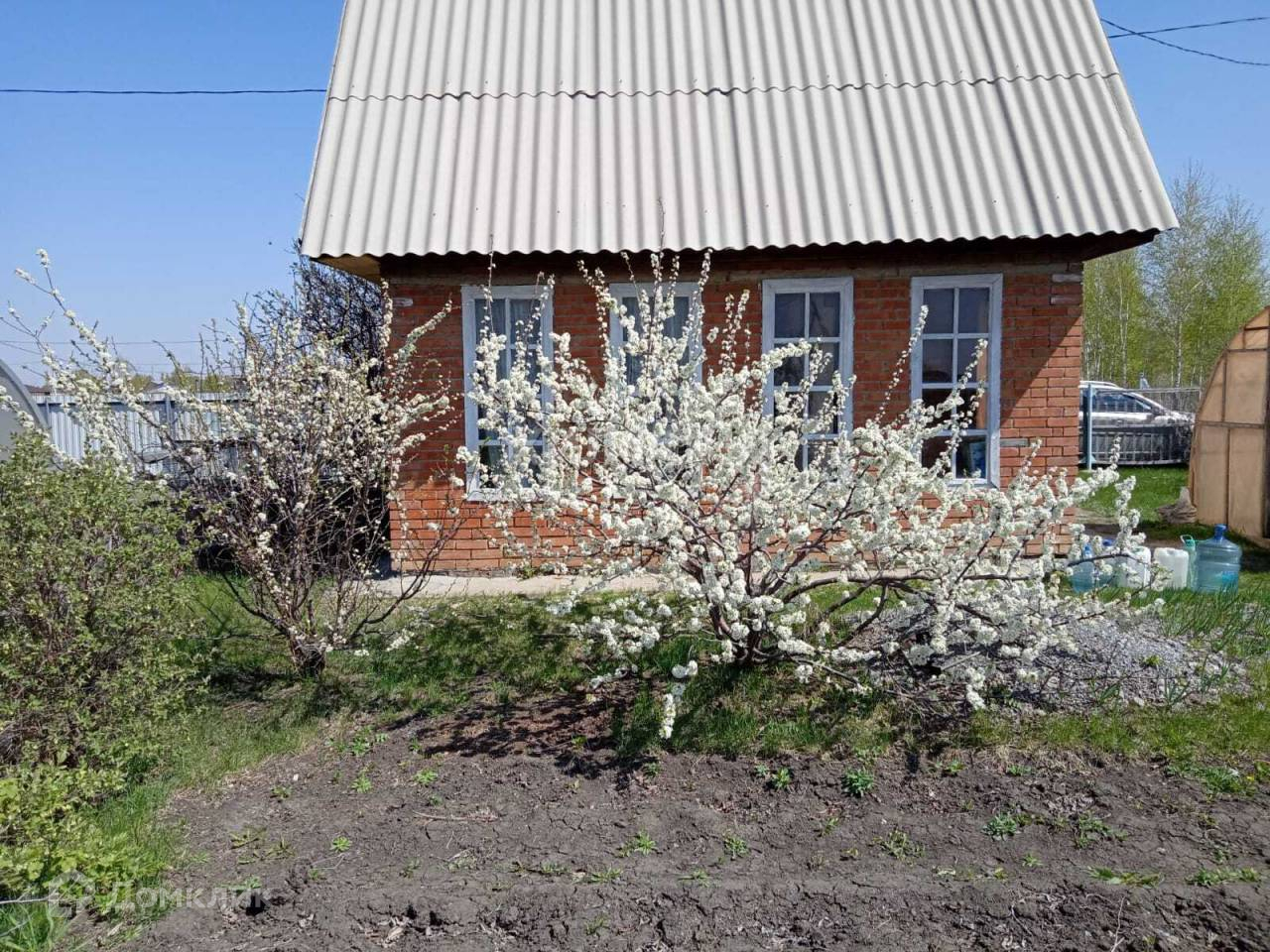 Дом находится на участке площадью 5,1 сотки, на котором расположены: уютная банька, хозблок, для хранения инструментов и других вещей, а также две теплицы. Есть парковочное место для автомобиля.