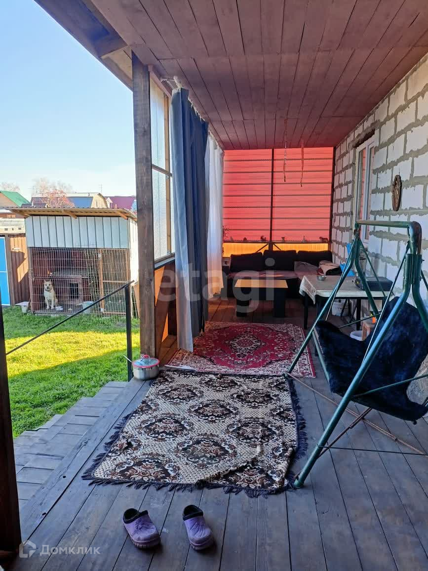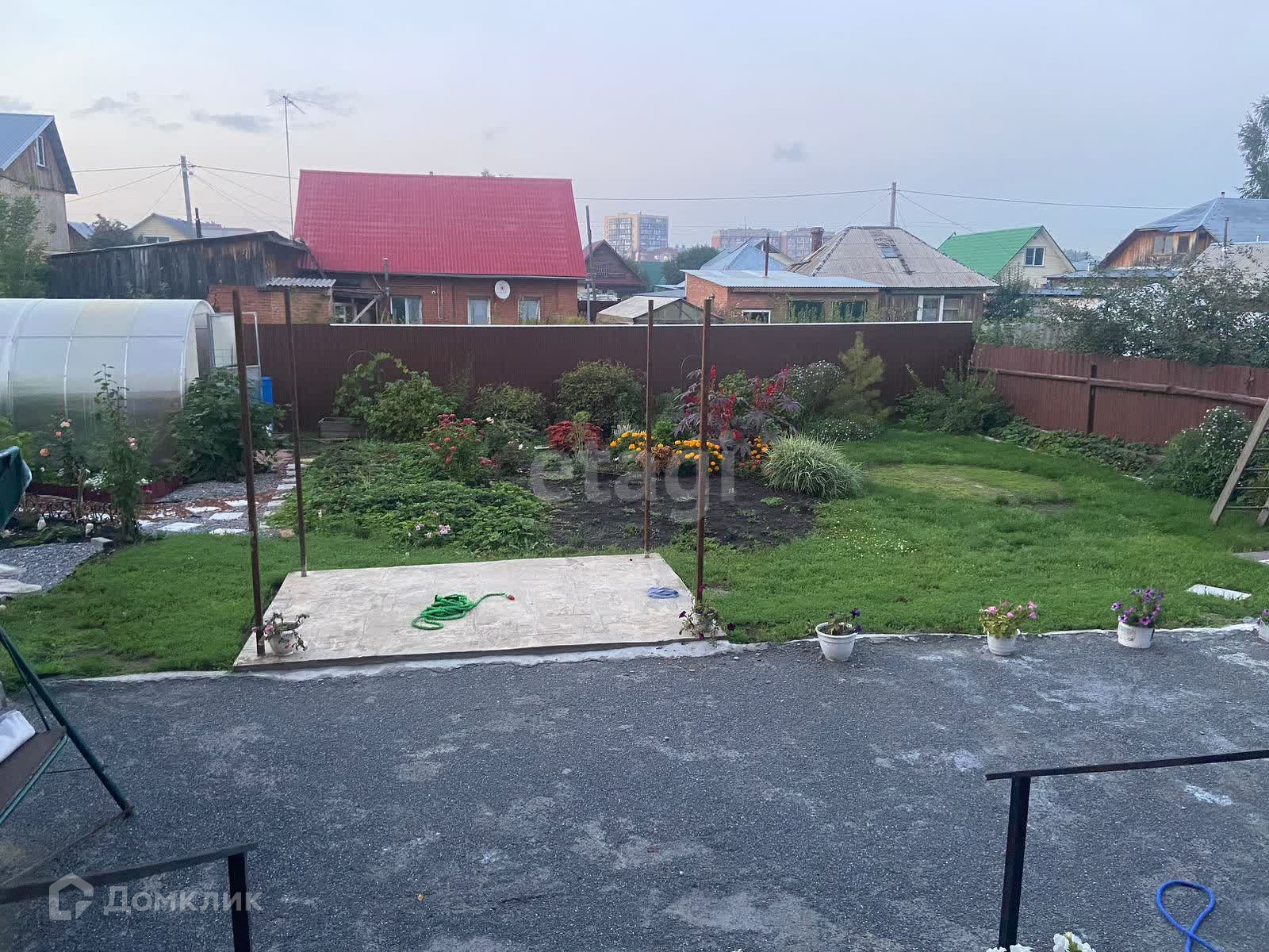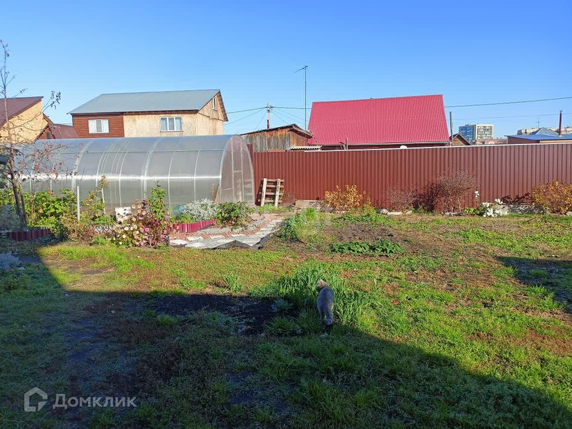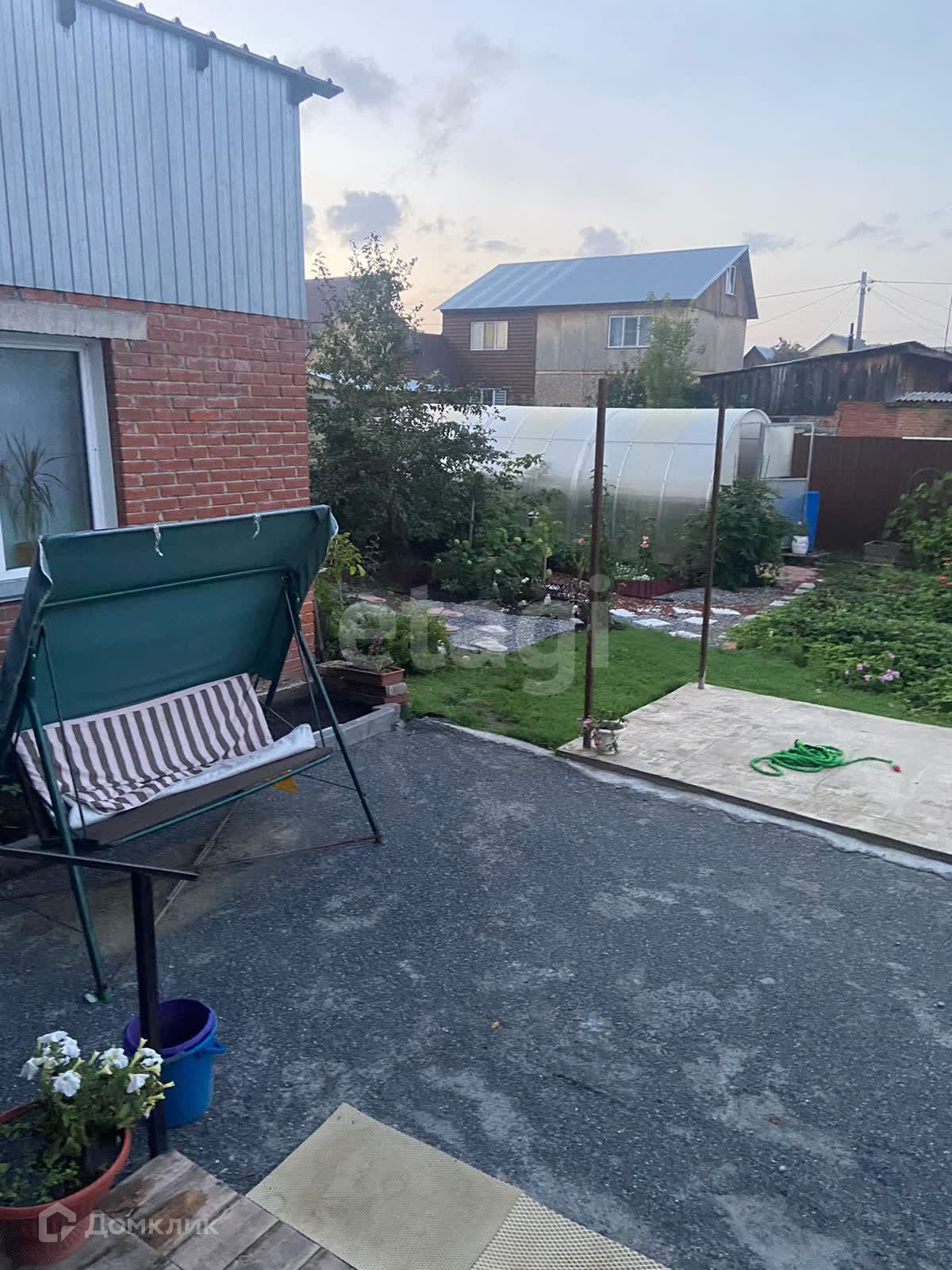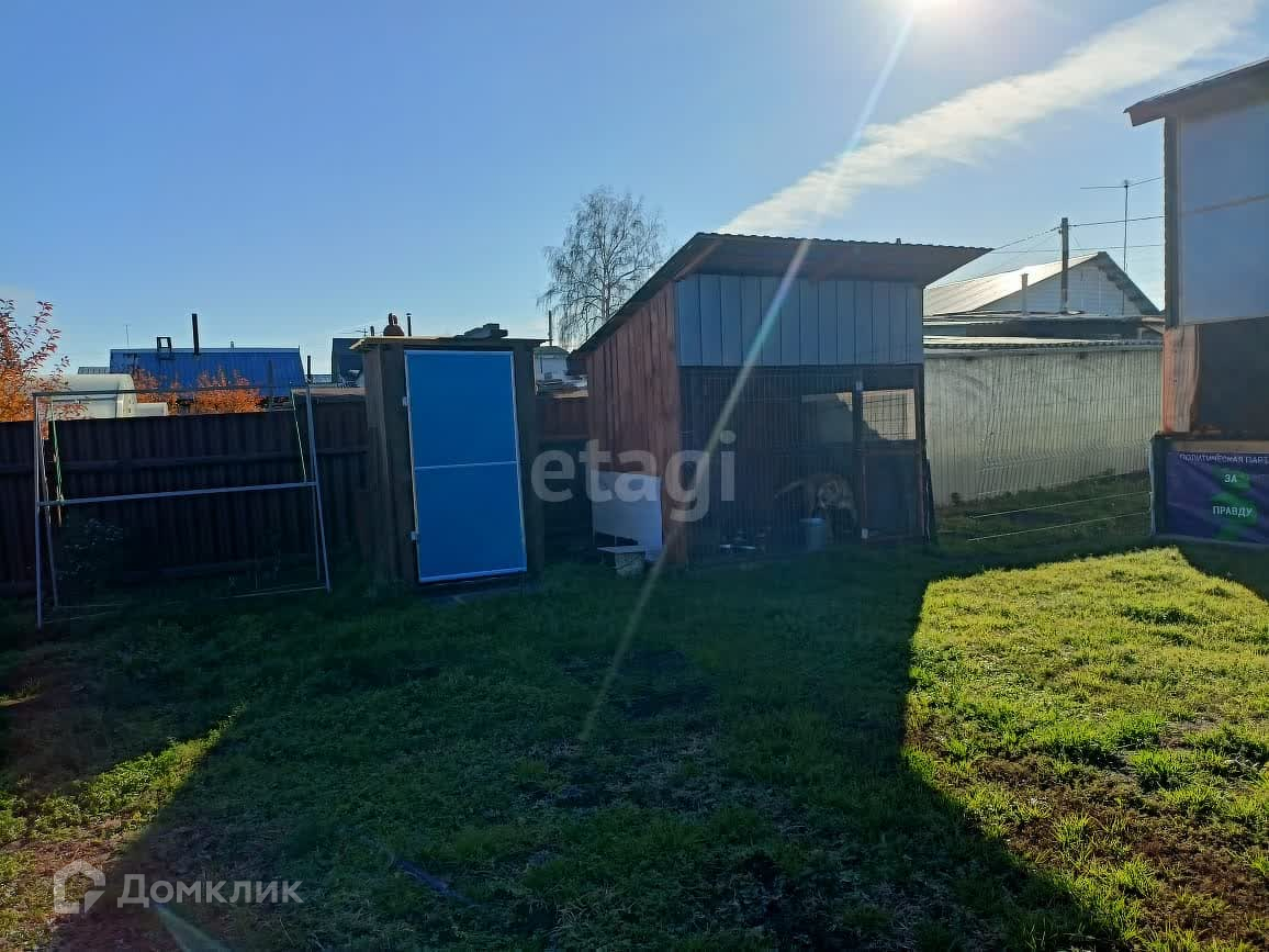 Дом стоит на участке размером 6 соток. Ограждение участка из металлопрофиля. Участок ухоженный, есть теплица, гараж, вольер для собаки, площадка для мангала.