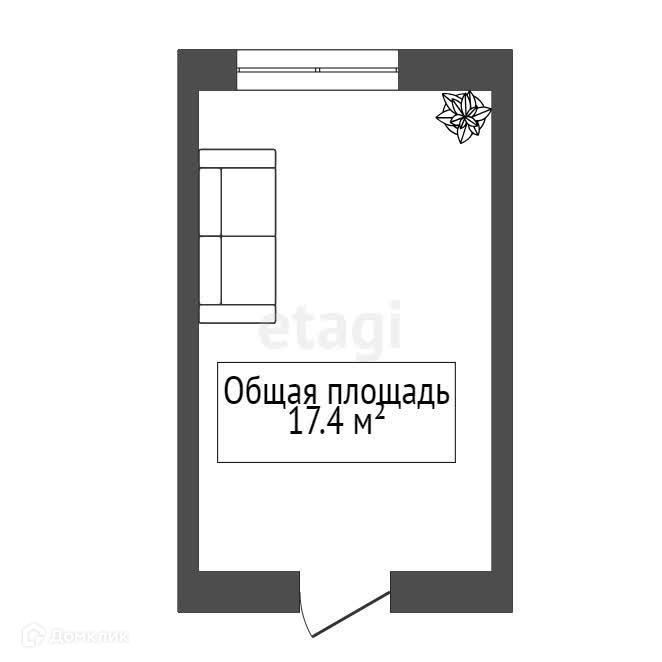 Общая площадь 17.4 м2