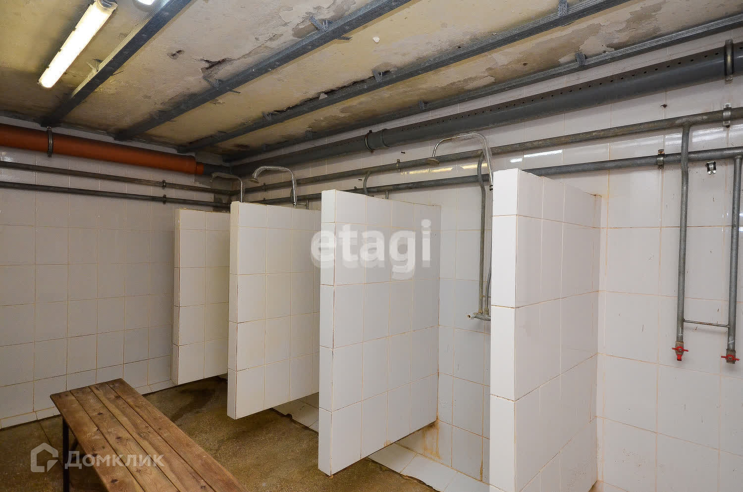 Душевые находятся на первом этаже. Есть мужская и женская отдельно. В каждой по 8 кабинок.