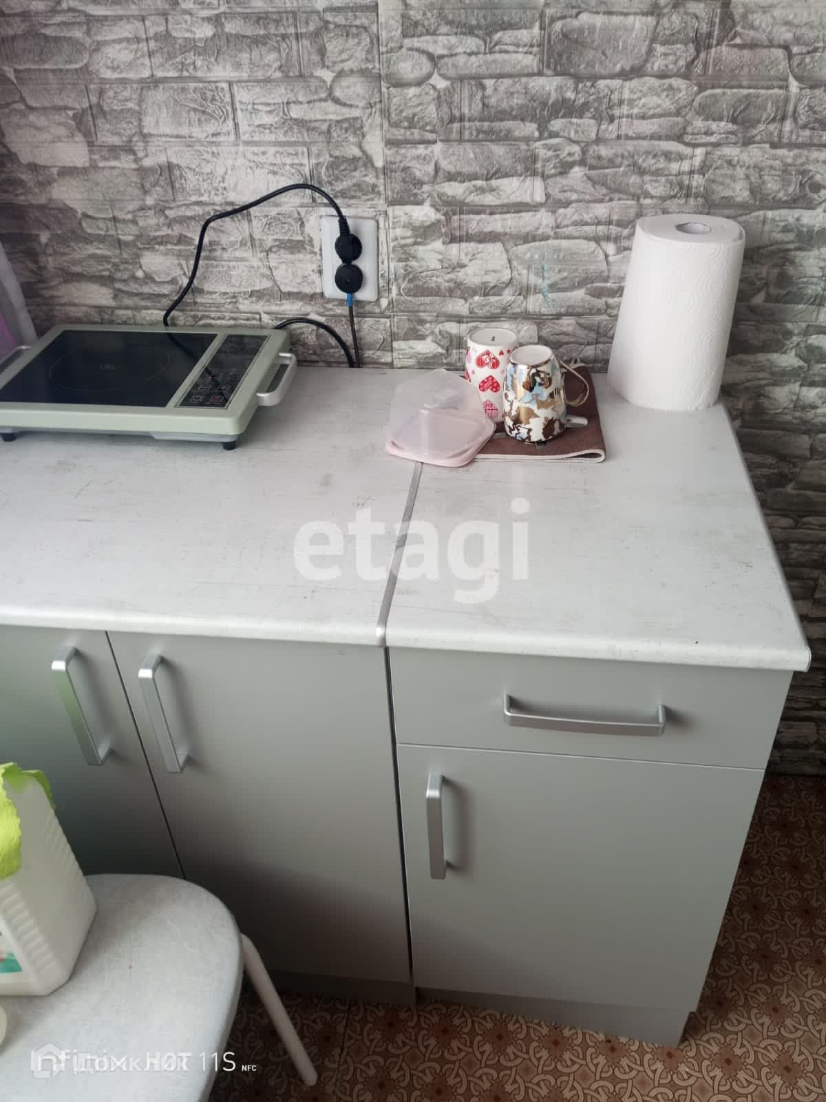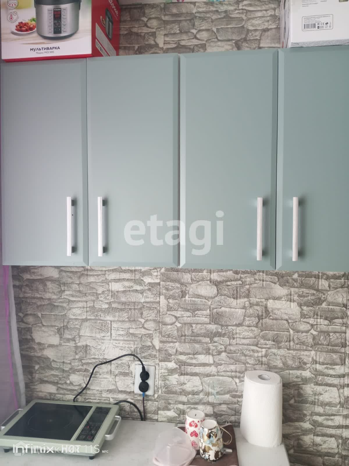Остаётся кухонный гарнитур, кресло-кровать, шкаф.