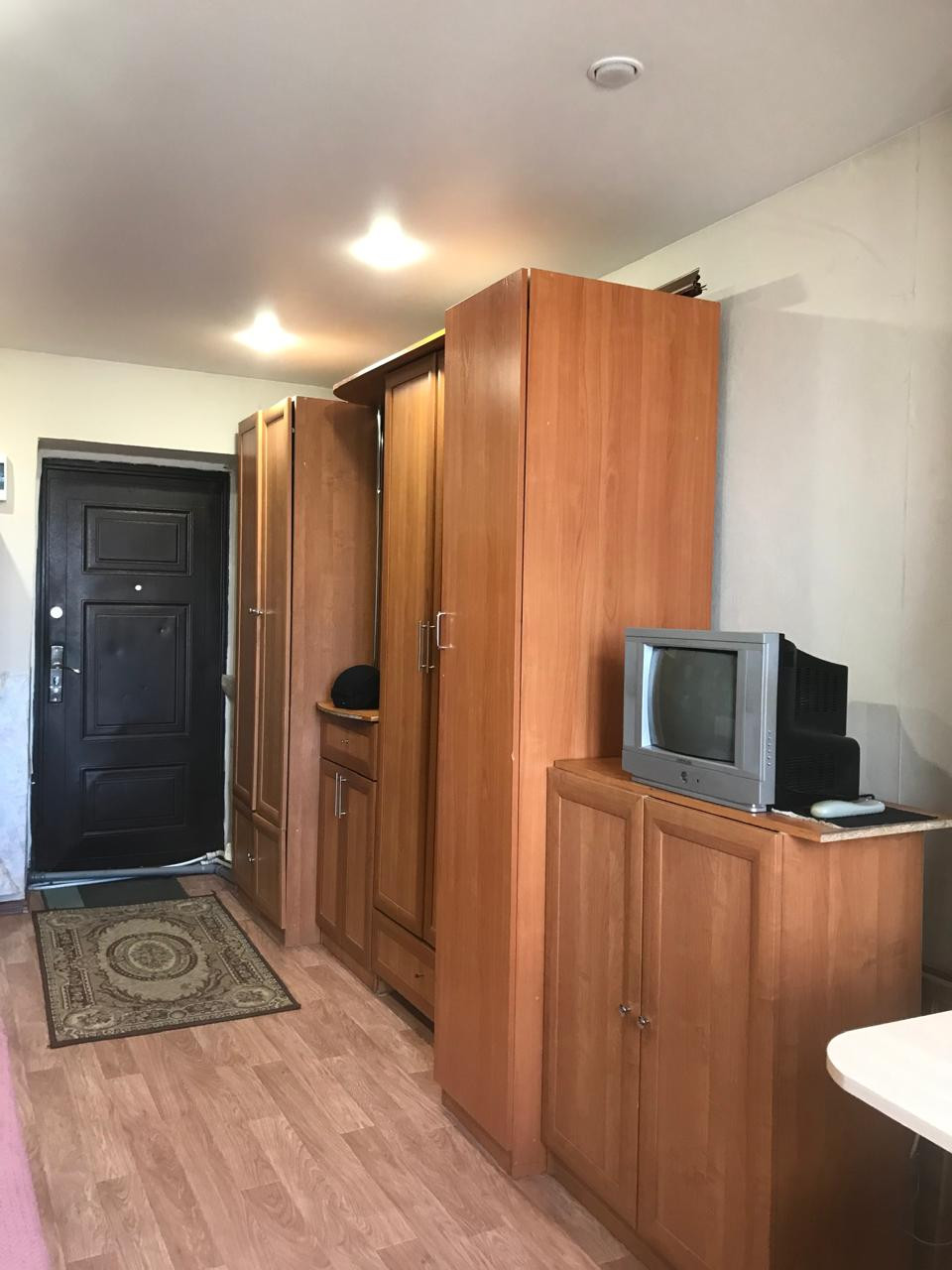 Металлическая входная дверь, натяжные потолки, окно ПВХ.