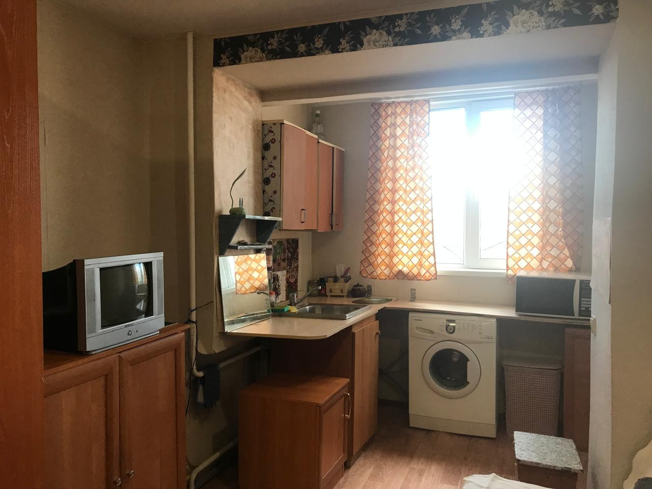 Комната укомплектована мебелью и техникой, установлена раковина.