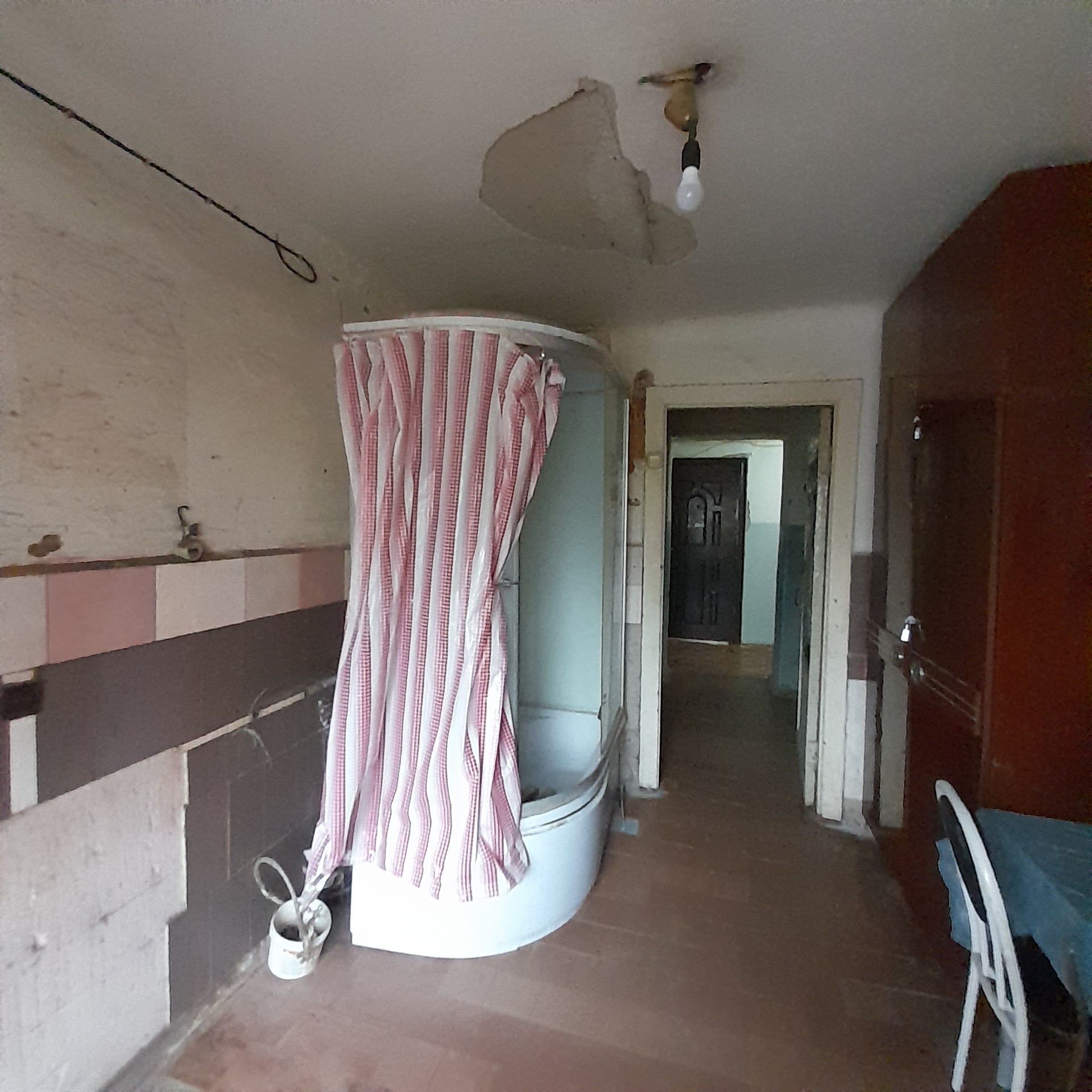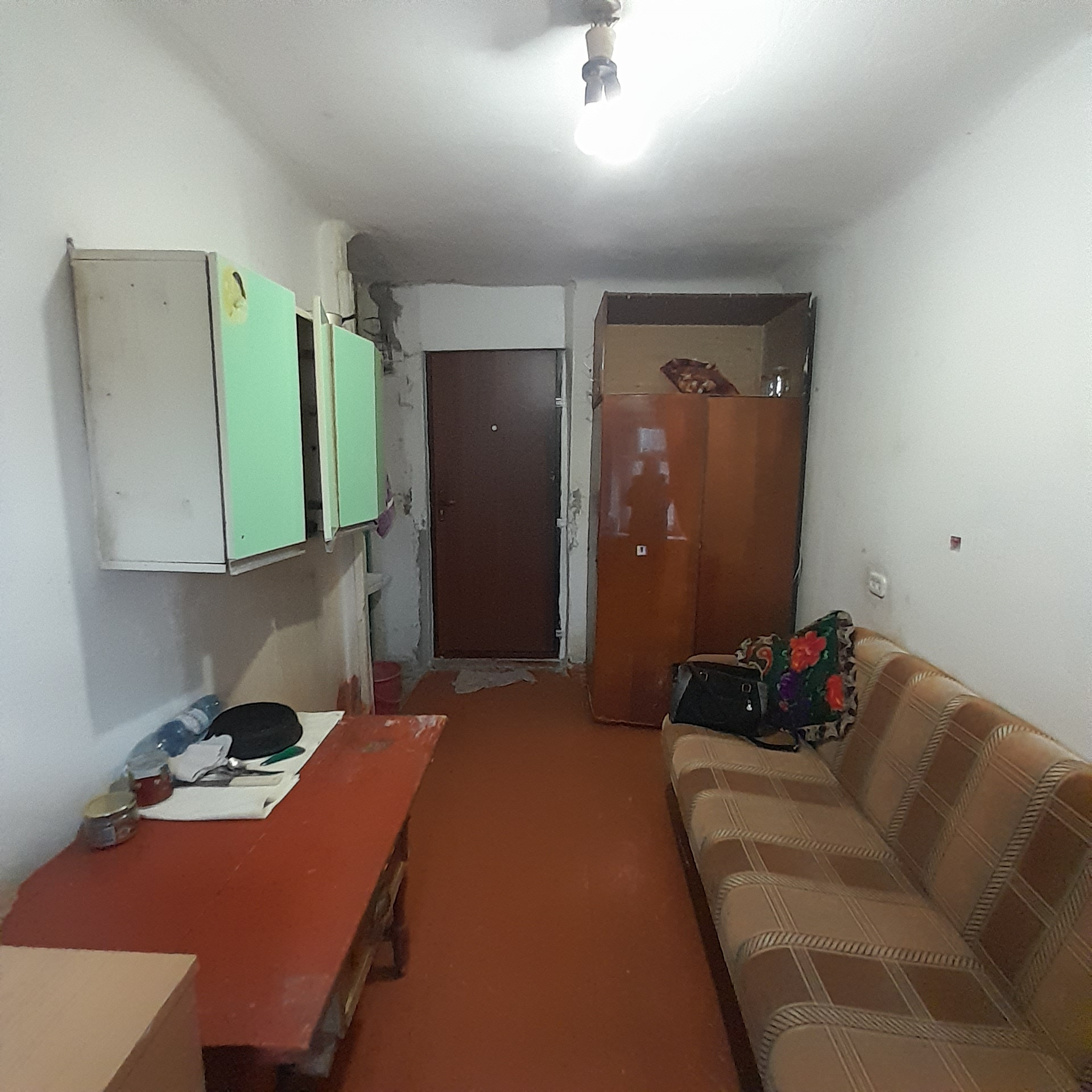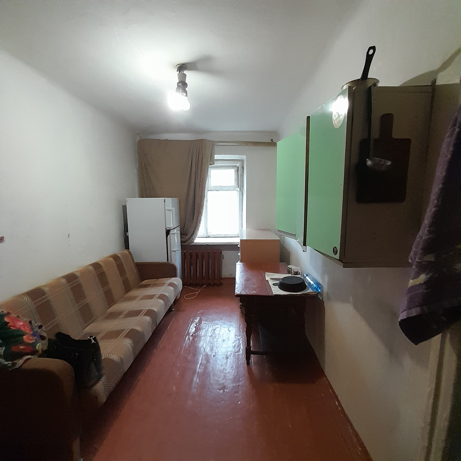 Комната в общежитии, в самом центре города. Требуется ремонт. Адекватные соседи по секции. Вода в комнате. В секции душ и туалет.