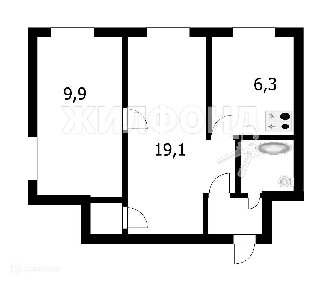 2-комнатная квартира, 41.9 м2, этаж 1 / 4, на продажу в Бердске, улица Свердлова, 4
