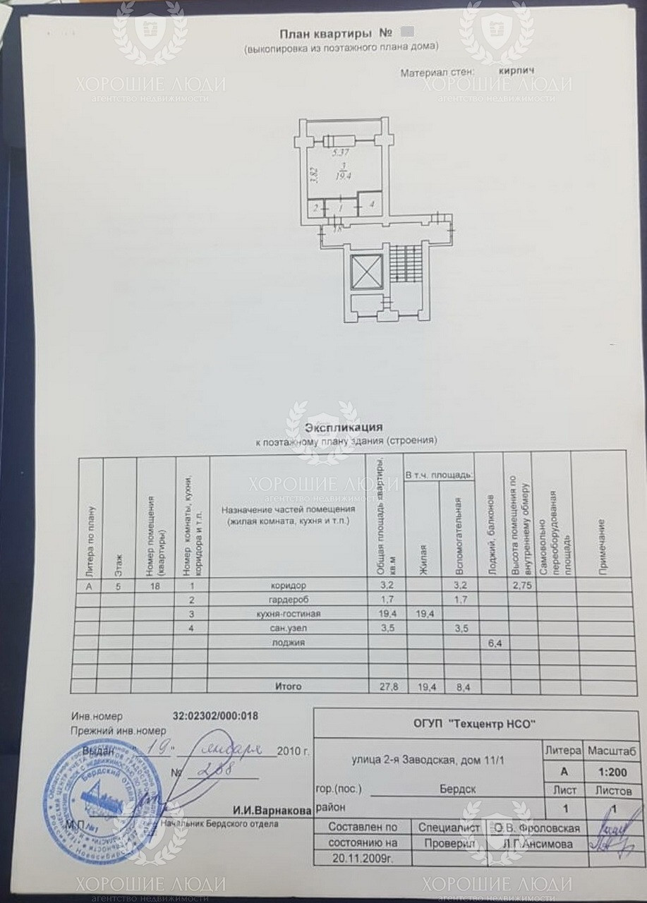 Общая площадь 27.8 м2