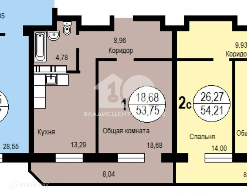 Общая площадь 54 м2