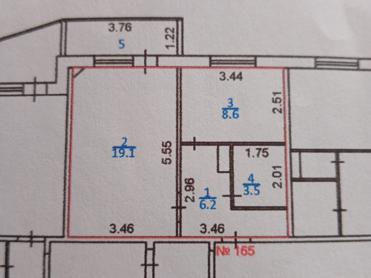 Жилая площадь 19.1 м2