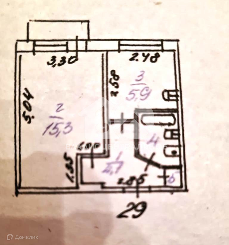 Общая площадь 28.6 м2