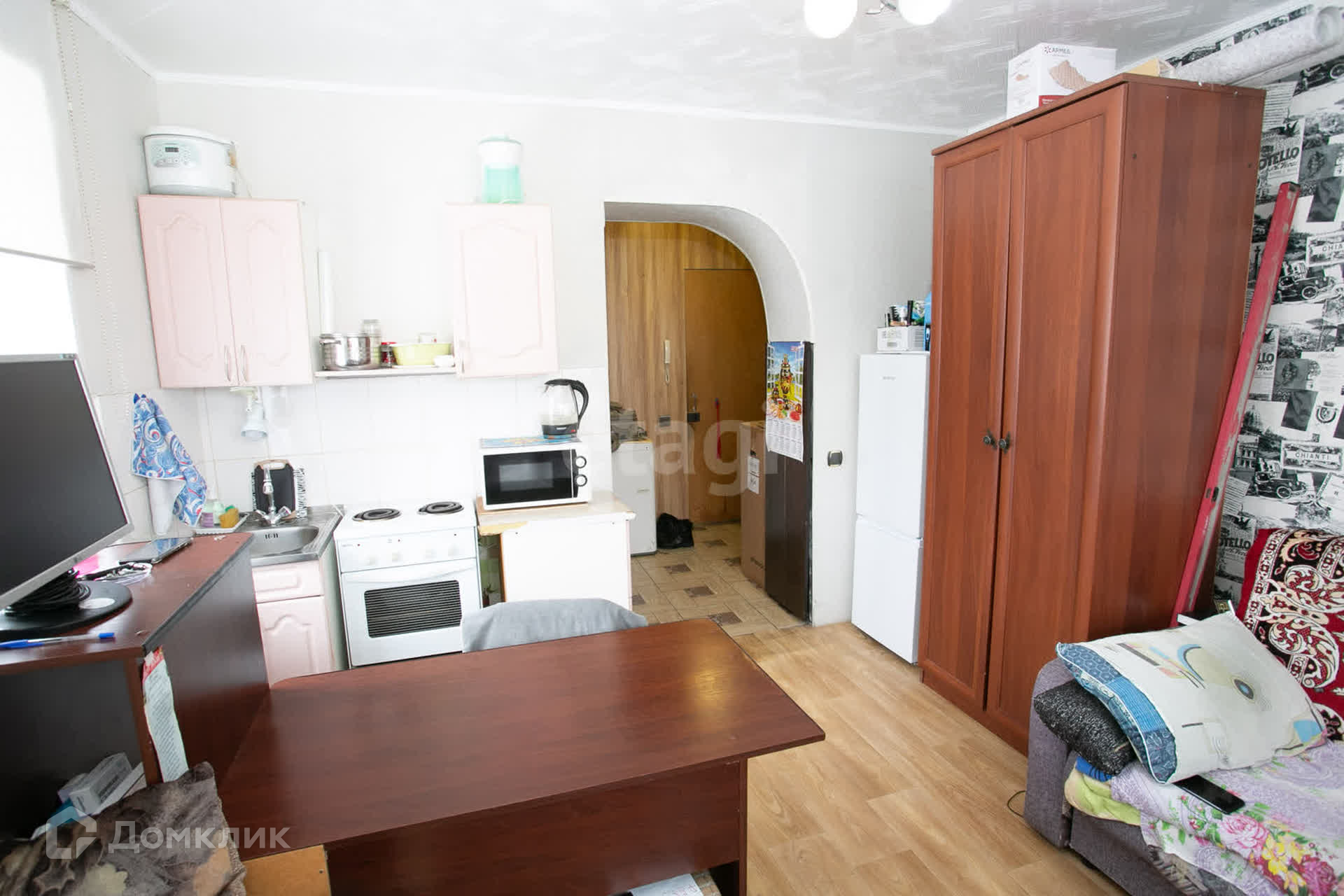 СОСТОЯНИЕ ОБЪЕКТА: Студия находится на 2 этаже кирпичного дома. Сделан косметический ремонт. ДВА окна. Есть балкон, застеклён.