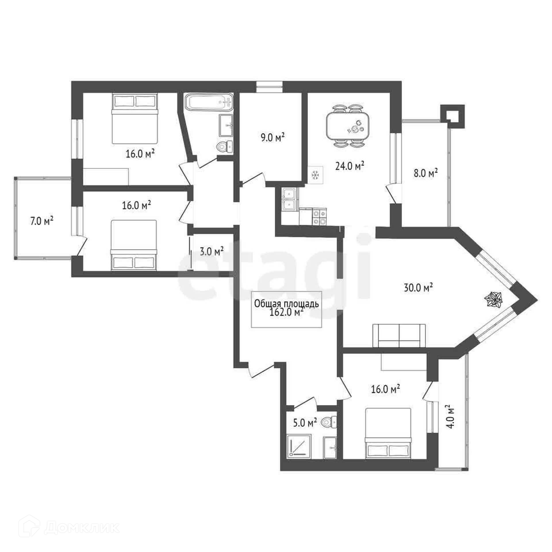 Общая площадь 162 м2