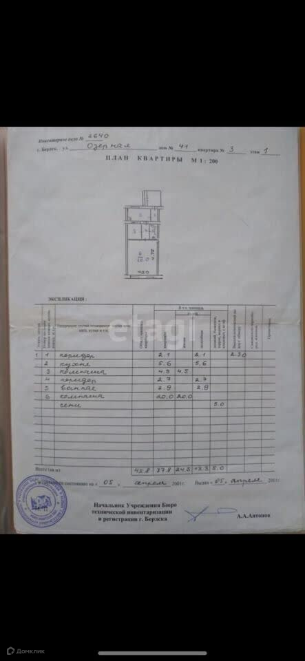 2-комнатная квартира, 42.8 м2, этаж 1 / 1, на продажу в Бердске, Озёрная улица, 41
