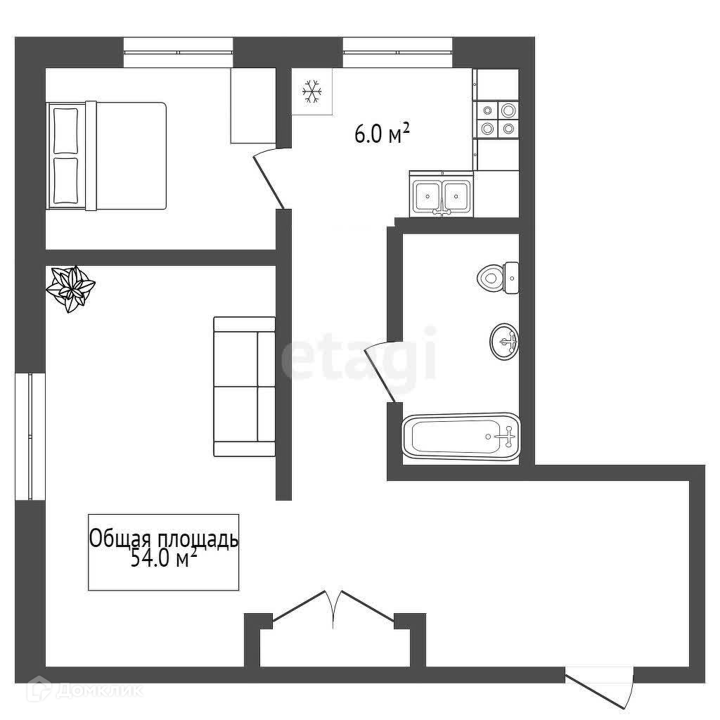 Общая площадь 54 м2