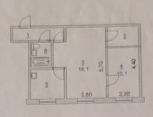 Общая площадь 41.7 м2
