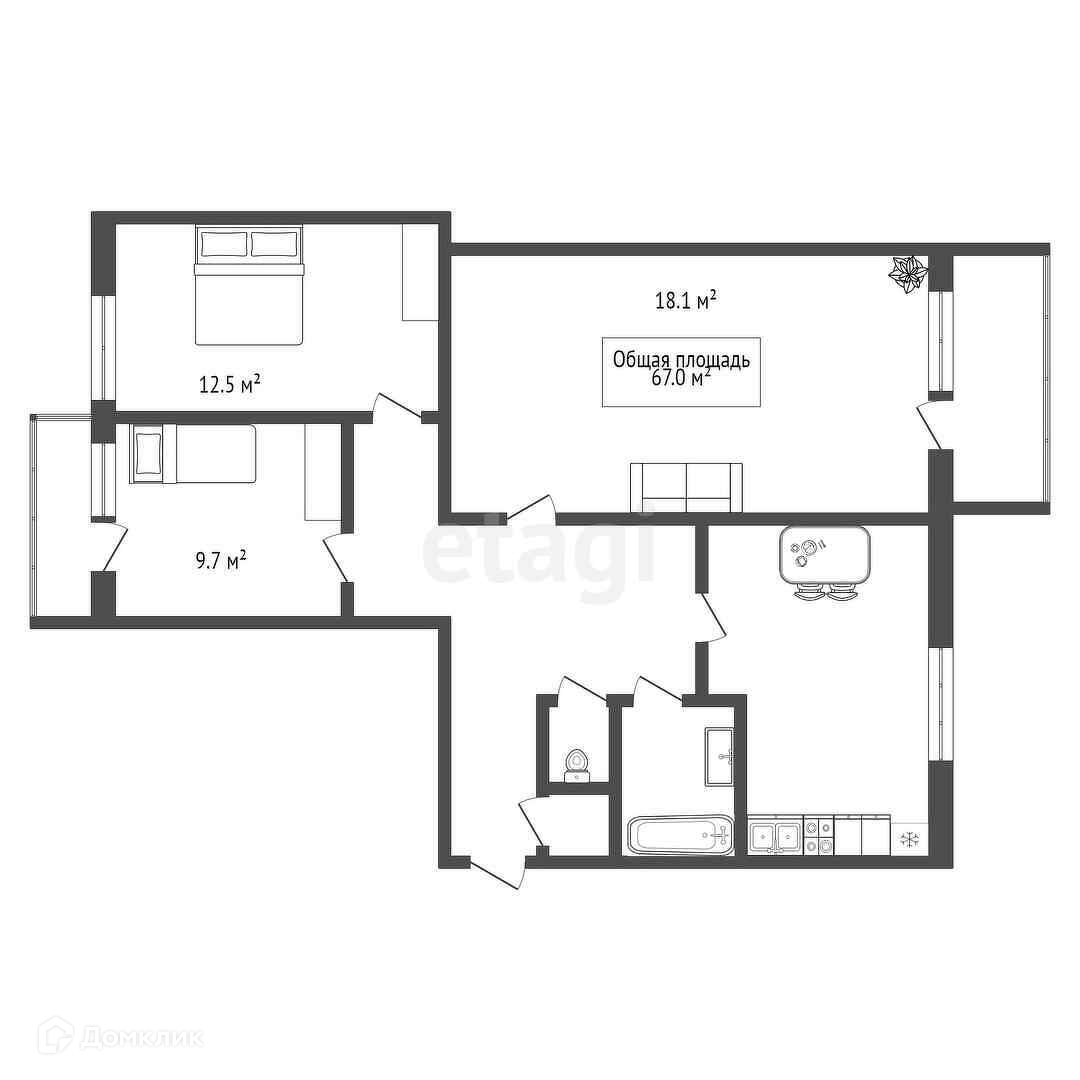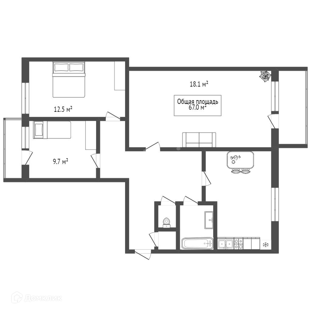 Общая площадь 67 м2
