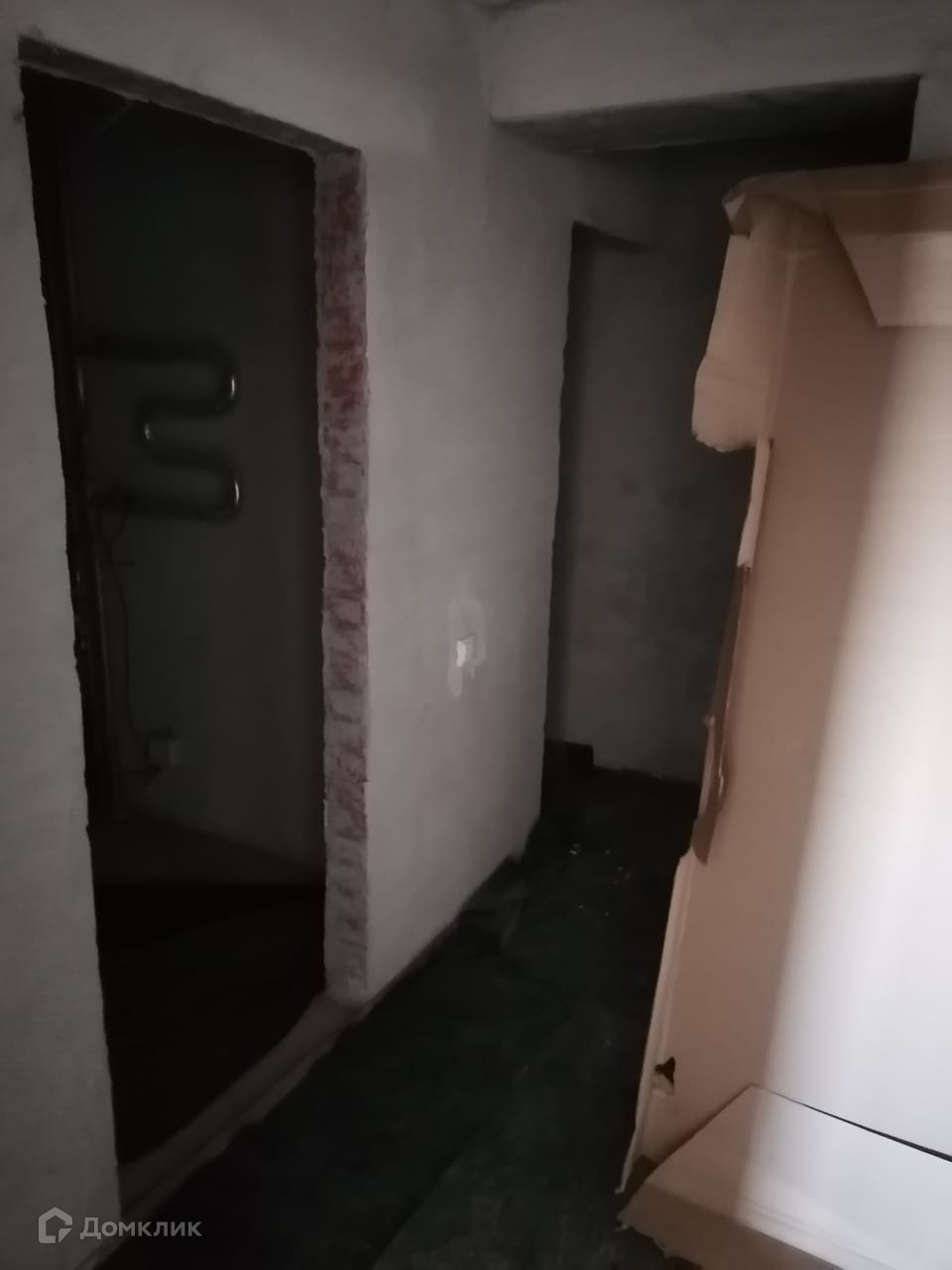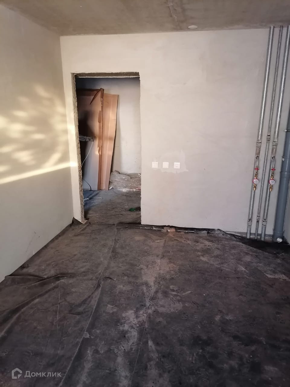 стены отшпаклеваны , на полу- стяжка , проведена электрика , установлены счетчики ,