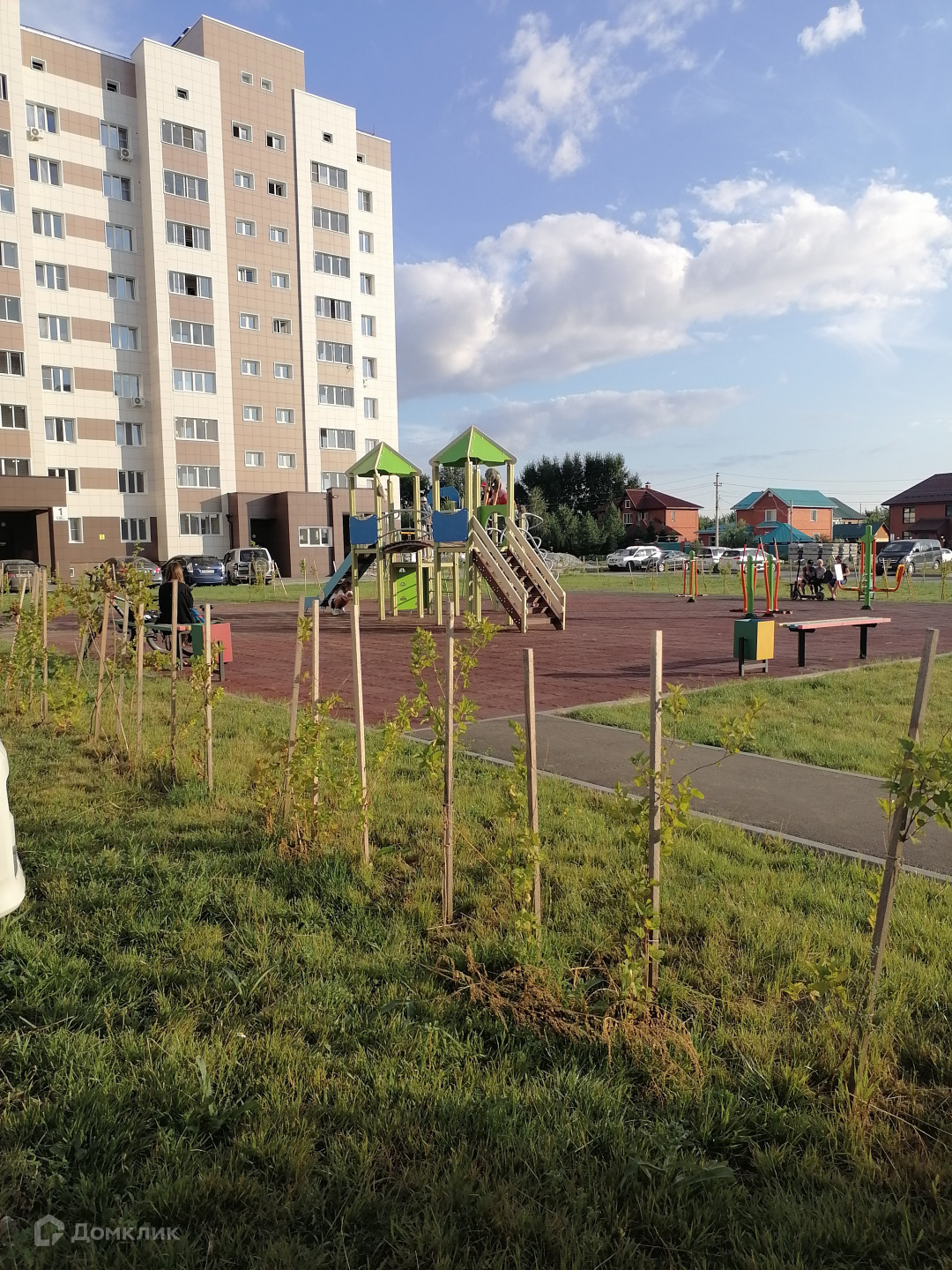 Во дворе оборудована спортивная и детская площадка ,
