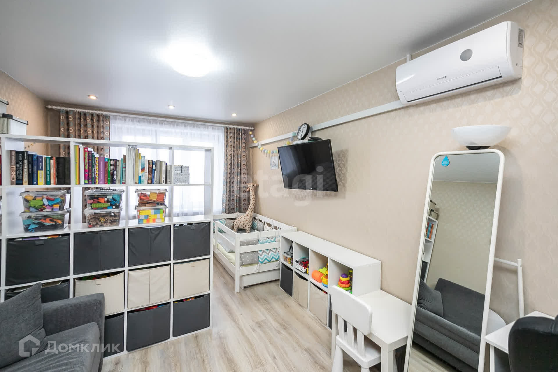 В квартире останется встроенный шкаф-купе и кондиционер.