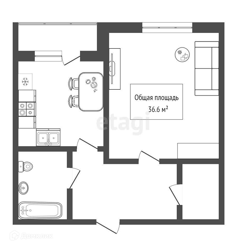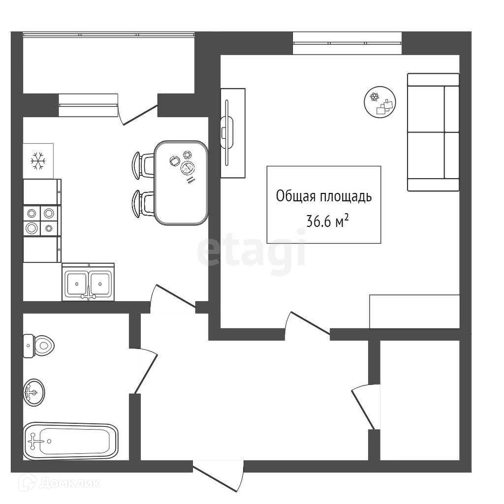 Общая площадь 36.6 м2