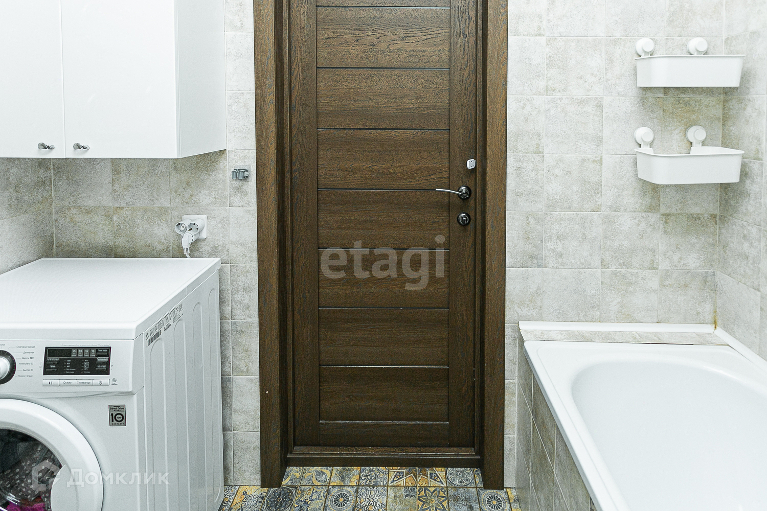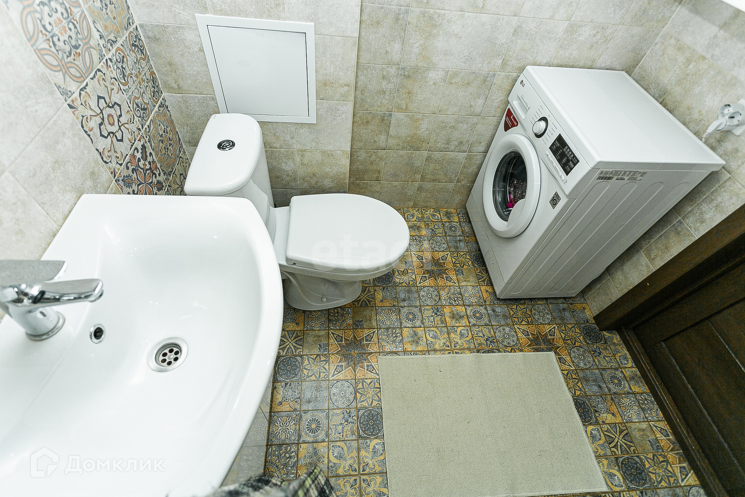 В сан.узле пол и стены выложены кафелем.