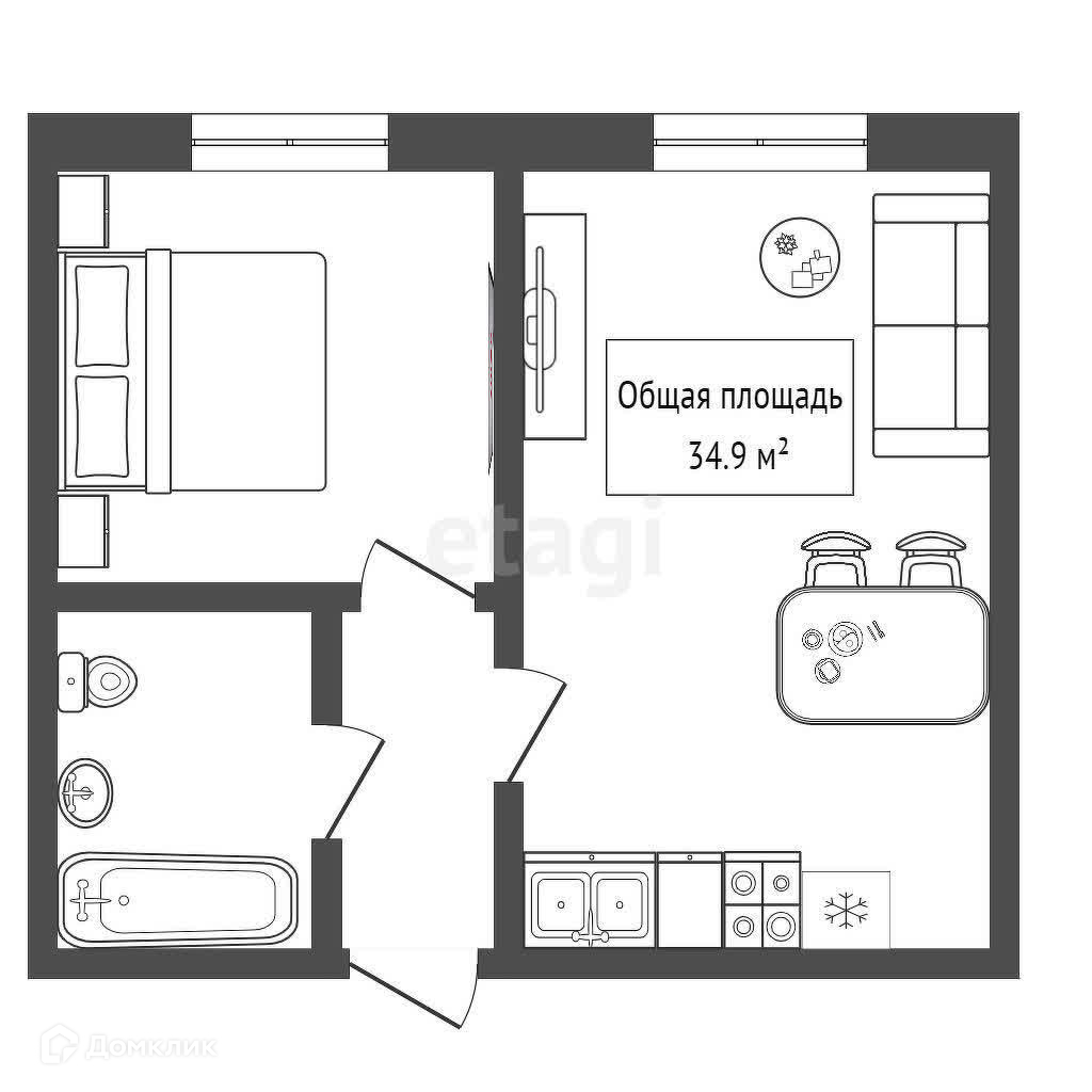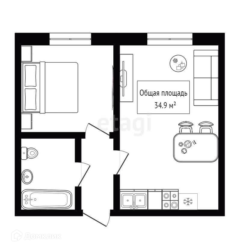 Общая площадь 34.9 м2